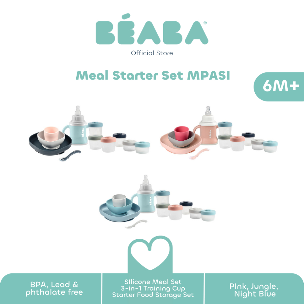 Paket Hemat Beaba Meal Starter set MPASI Bundle - Silicone Meal Set, 3-in-1 Training Cup, Starter Food Storage Set 6 - P