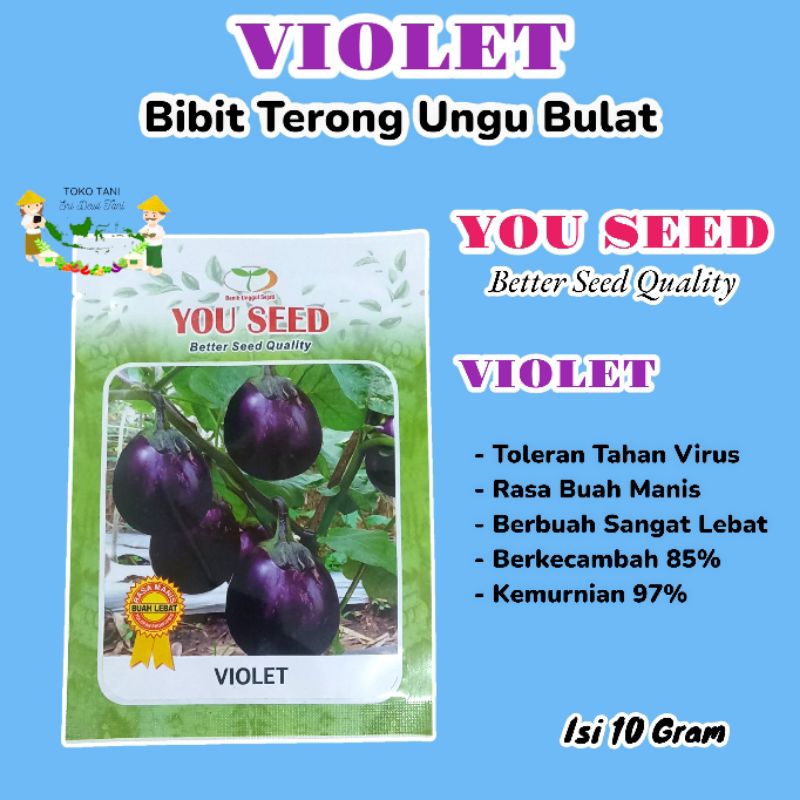 Bibit Benih Terong Bulat Ungu VIOLET 10 GRAM (±2200butir) YOU SEED Setara Benih Terong Nasubi