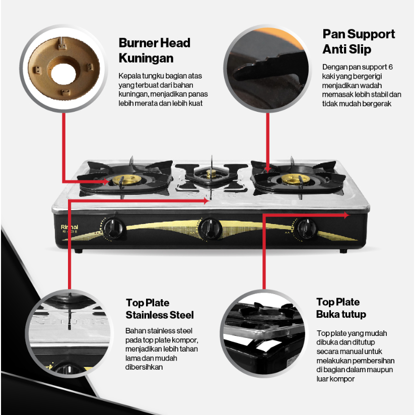 RINNAI - KOMPOR GAS 3 TUNGKU - RI-603E