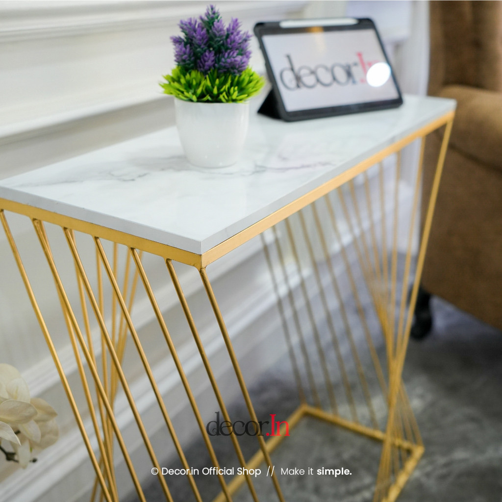 [Star] Meja Console Ruang Tamu Minimalis Industrial Top Hpl Motif Marmer Liuk