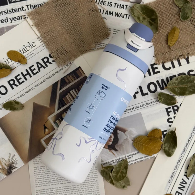 Owala FreeSip™ Pink bow Spesial Termos Botol Minum Pasangan 24oz/32ml Edisi Portabel Anti Tumpah 2 Cara Minum
