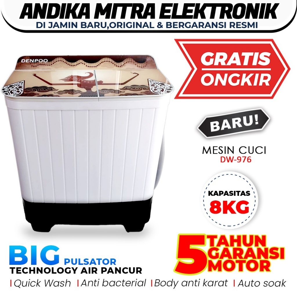 DENPOO MESIN CUCI DW 8907B TP 8KG 2 TABUNG