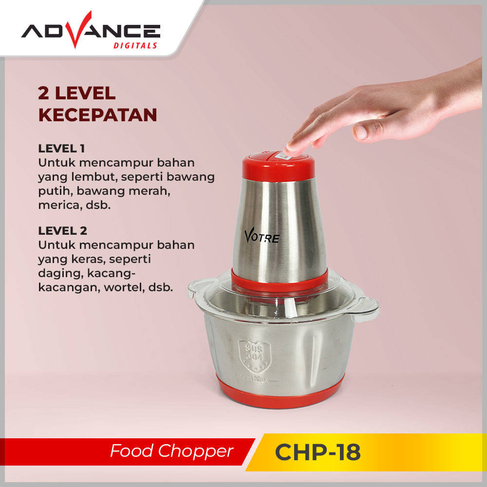 【Garansi 1 Tahun】Advance Food Chopper Blender Penggiling Daging 2L Baja Tahan Karat Listrik Meat Grinder Chopper Daging