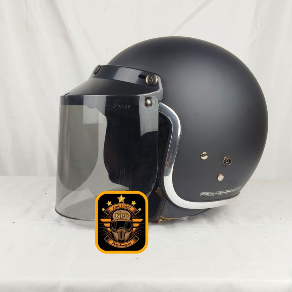 [LC] Helm Bogo D3W4SA Kaca Datar Hitam SNI - Helm Bogo Wanita Pria NO1 helm Bogo polos full leher