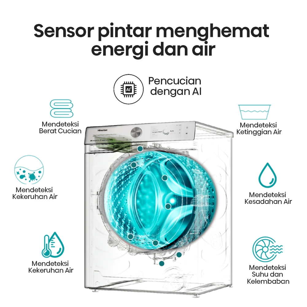 Hisense Mesin Cuci WF105M3 Front Loading Kapasitas 10.5KG 1 Tabung Bukaan Depan Active Water Plus AI Wash Perawatan Aler
