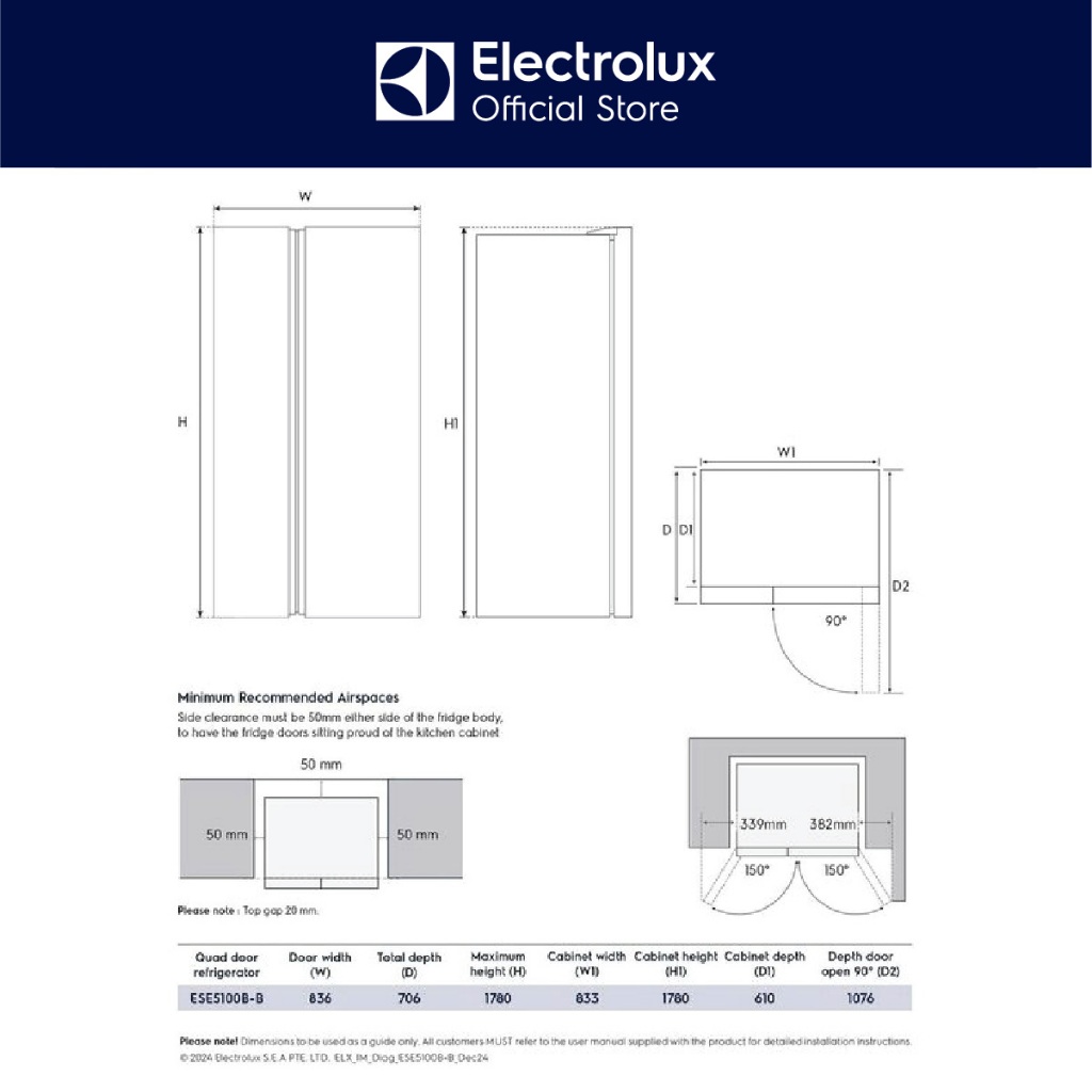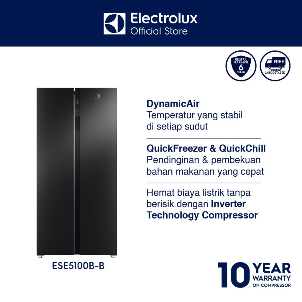 Electrolux Kulkas Side by Side ESE5100B-B 505L DynamicAir - Inverter Hemat Energi - Hitam Matte Garansi 1 Tahun 10 Tahun