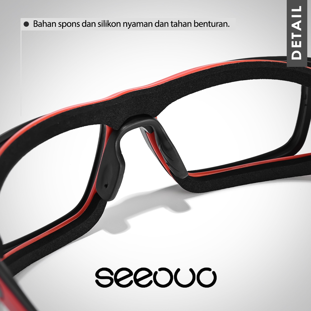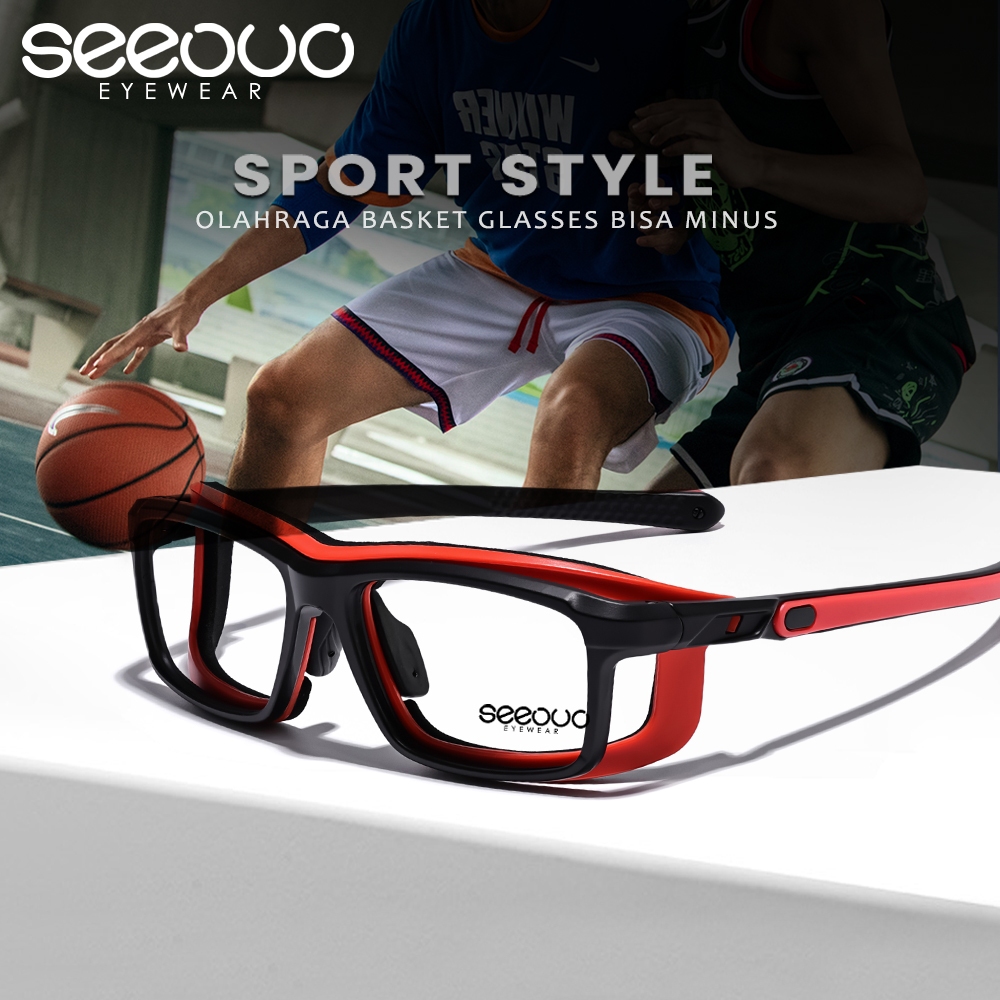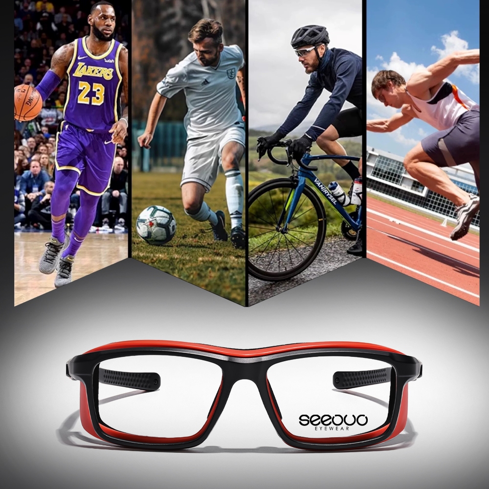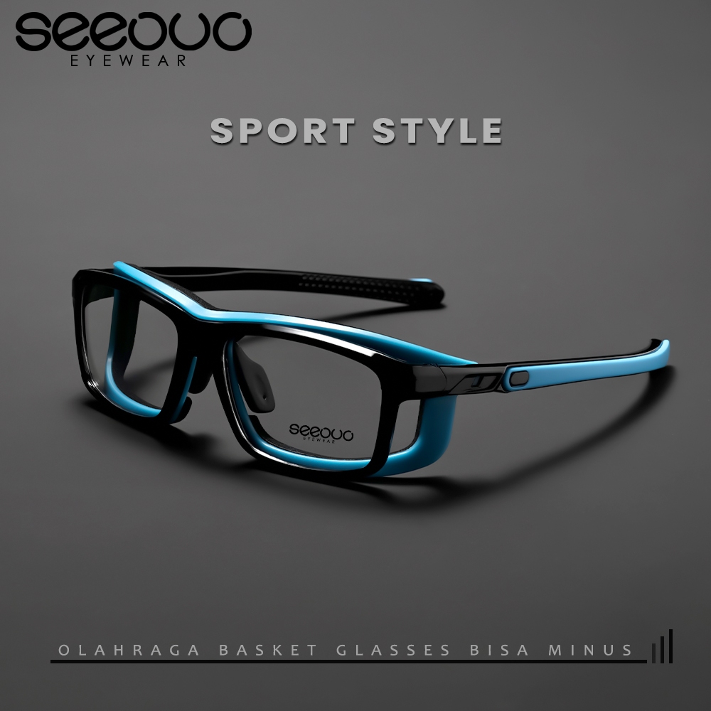 Seeouo Kacamata Frame Sport Style Model Kotak TR90+Silicone Strap Olahraga Simple Badminton, Bersepeda Lari Bisa Minus Photocromic Antiradiasi 201