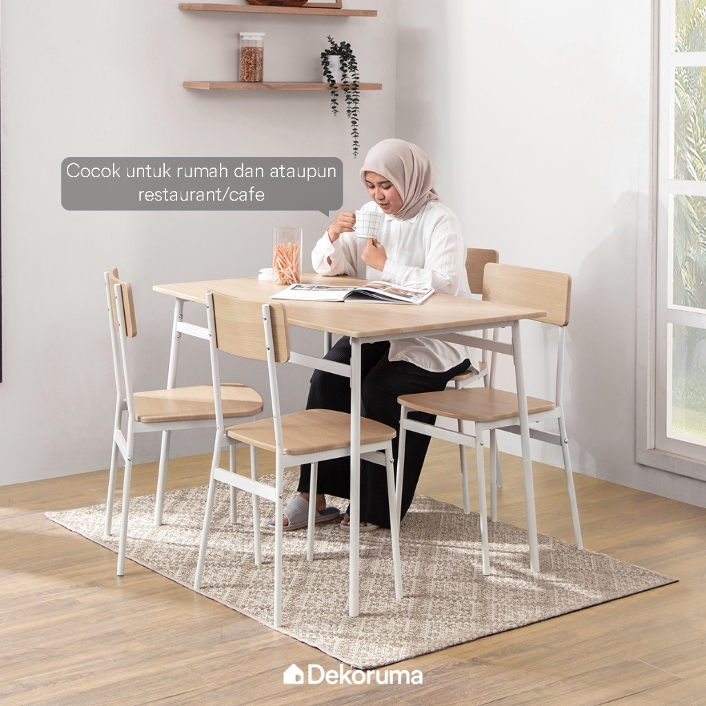 [Star] Meja Makan dengan 4 Kursi Walnut Putih