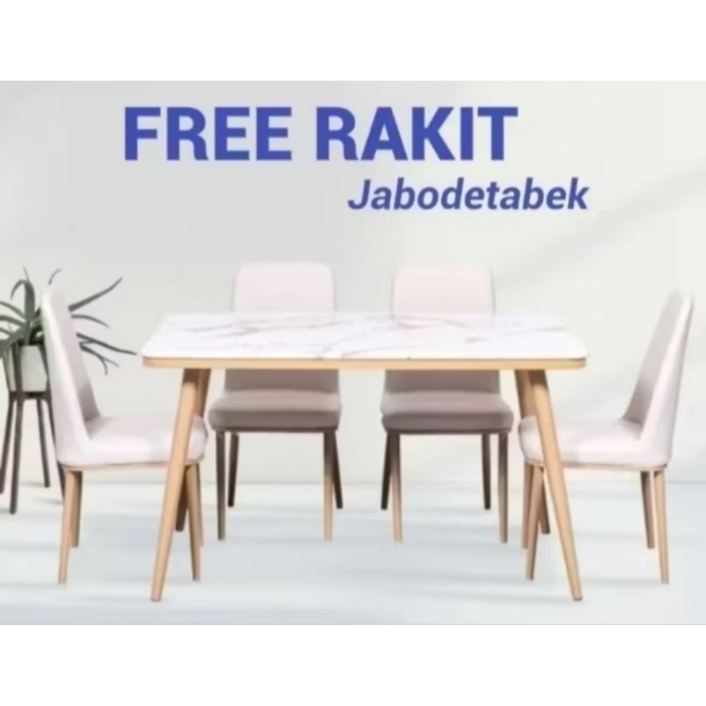 [Star] Meja Makan Marmer Premium Import 4/6 Kursi – Minimalis Elegan untuk Rumah Modern