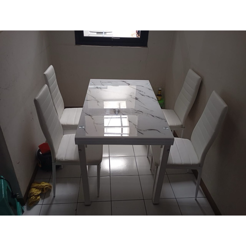 [Star] MEJA MAKAN MEJA KAKI BESI MEJA MAKAN KACA MOTIF MARMER MEJA MINIMALIS IMPORT