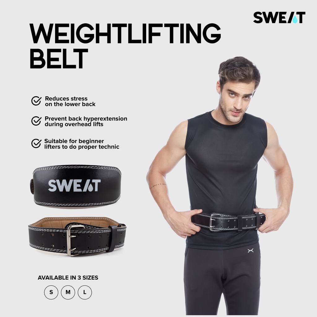 SWEAT - Weightlifting Belt PU | Sabuk Gym Powerlifting - Waist Support Leather Premium untuk Fitness