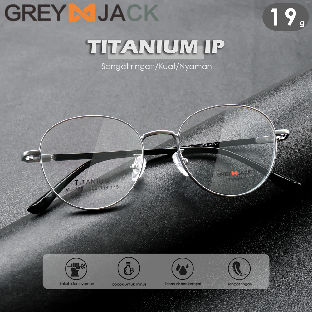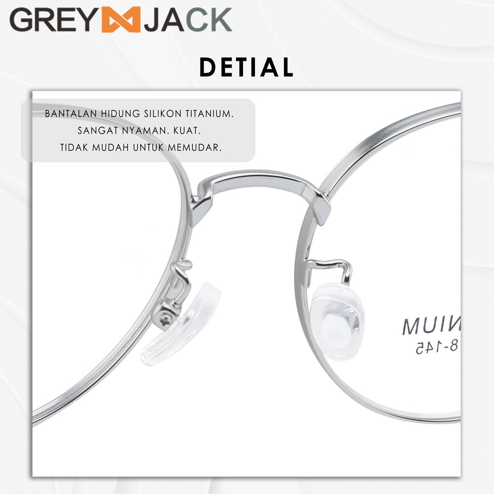 Grey Jack Frame Kacamata Bahan Titanium Ringan Bulat Modis Fashion Wanita dan Laki-laki Bisa Minus Antiradiasi Blueray Photocromic T 77026