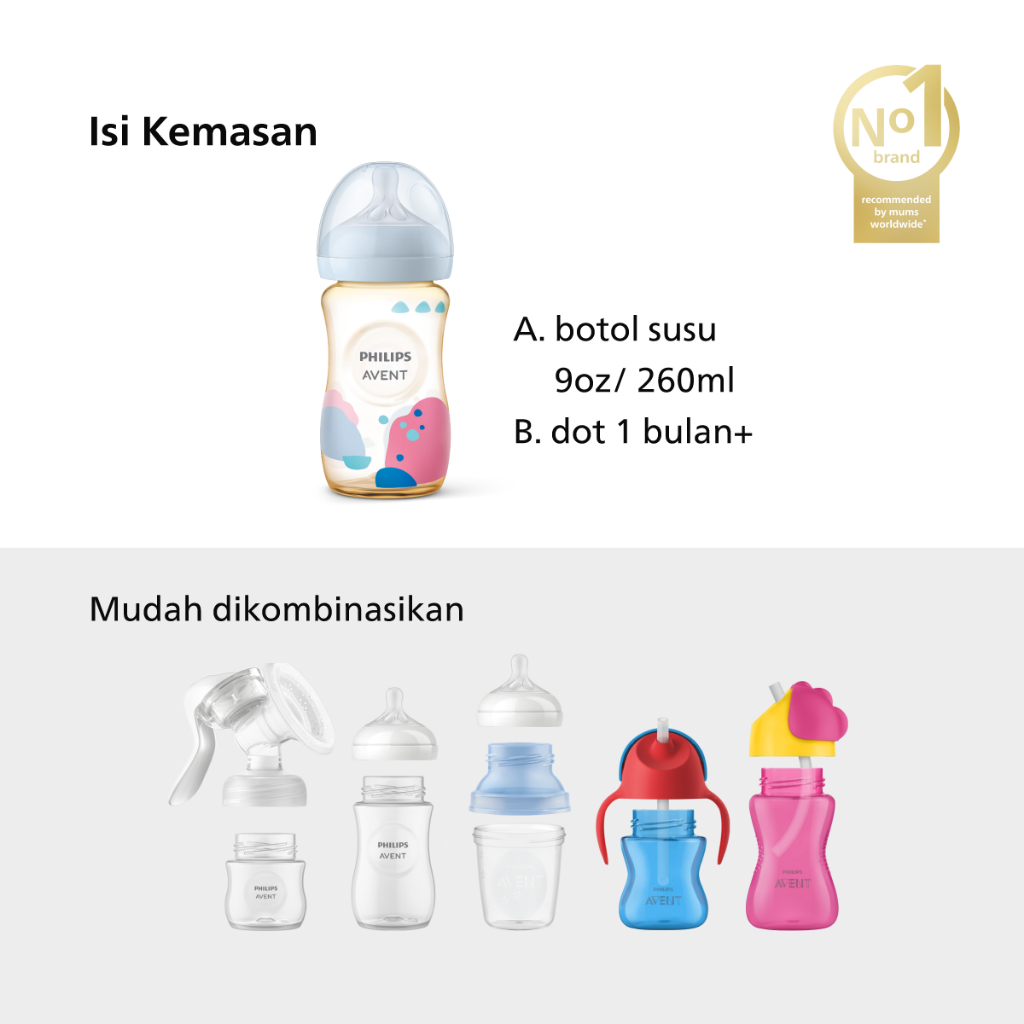 Philips Avent | Botol Susu Bayi | PPSU Natural Response | Dot Seperti Payudara Ibu & Tahan Hingga 180 C | 260 ml | Singl
