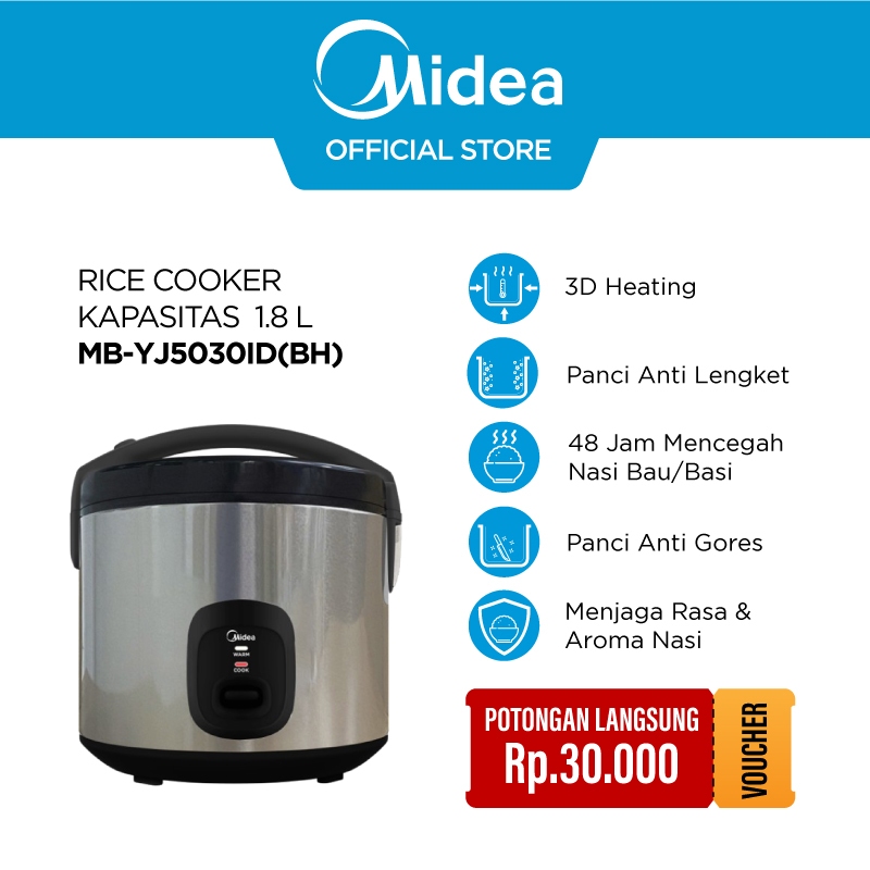 [Star] Rice Cooker - MB-FB30M161W - 5 Layer and 7 Preset Menu / Midea Rice Cooker Anti Basi 1.8L – Magic Com 3in1 Penanak & Pen