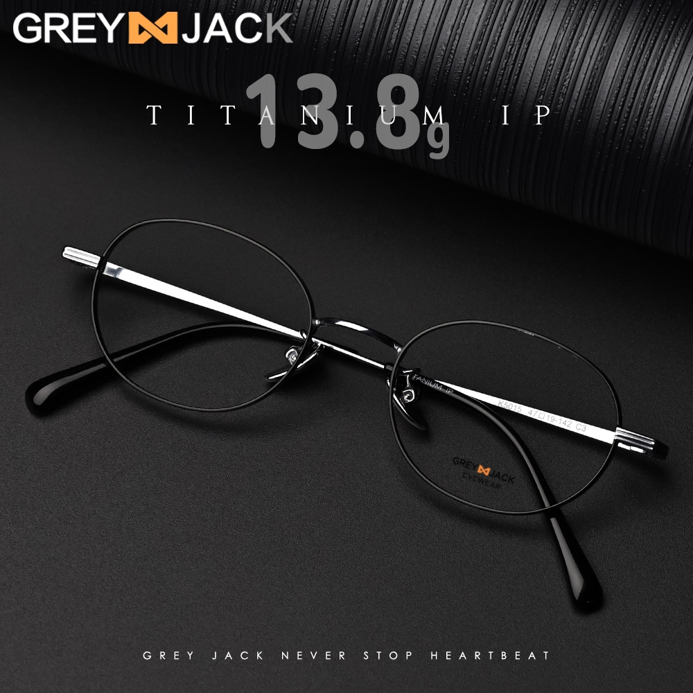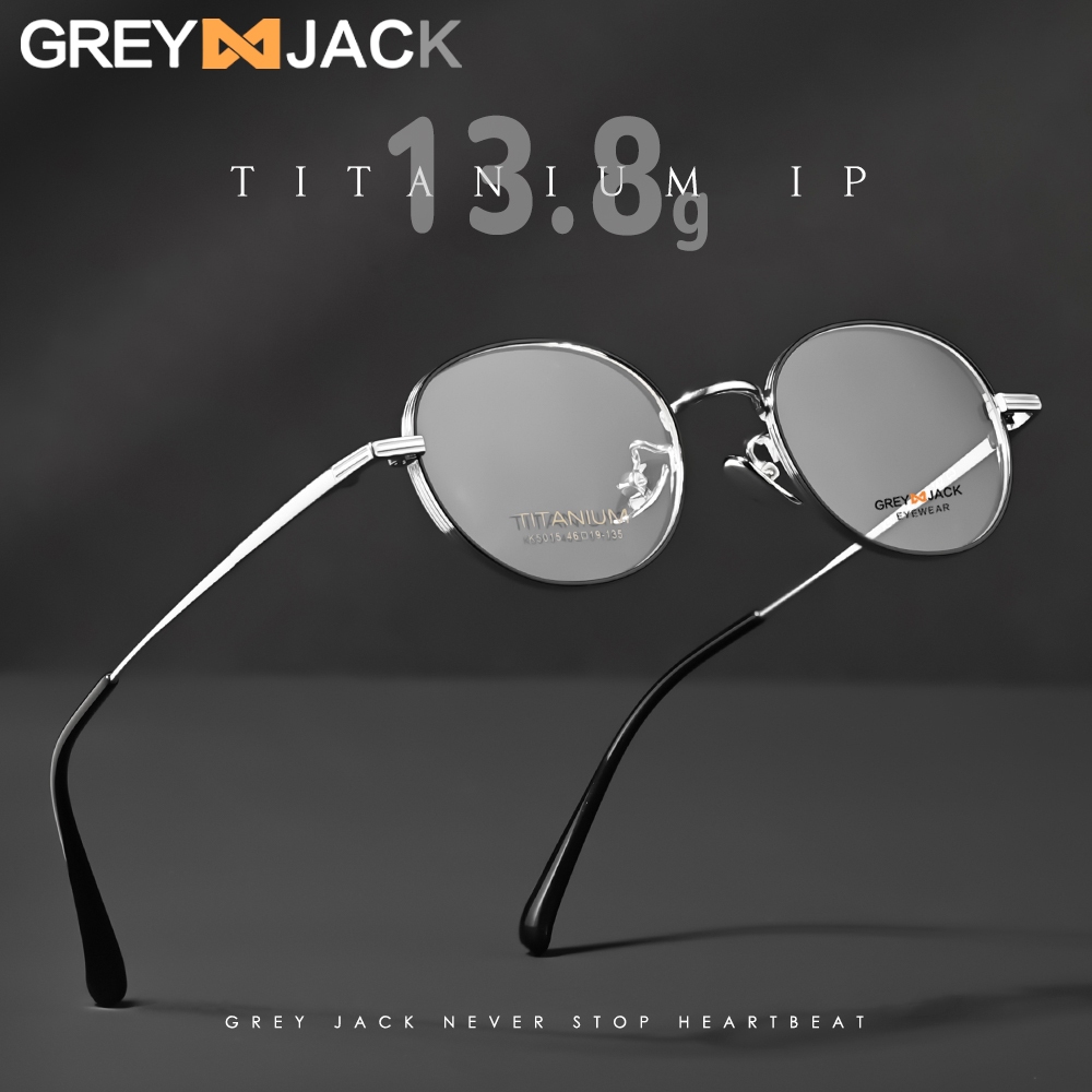 Grey Jack Kacamata Frame Titanium Model Oval Bulat Ringan Kokoh Fashion Pria Wanita Bisa Minus Antiradiasi Bluecromic 5015