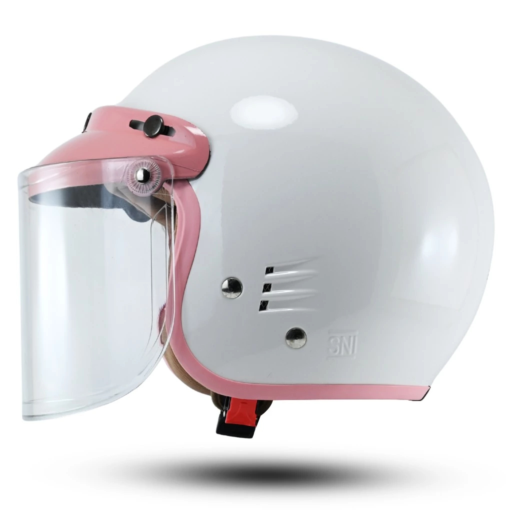 Helm Bipplast CEWEK Retro Bogo Solid LUMINOS Wanita Kekinian Kaca Datar SNI Motorcycle / Helm Bogo Wanita