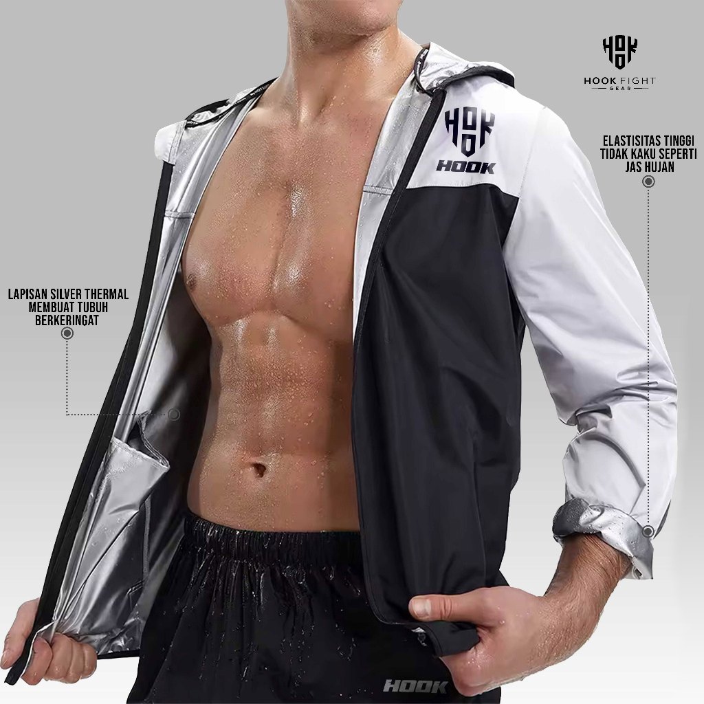 Jaket Sauna Suit Olahraga Baju Jas Pembakar Lemak Elastis Hook