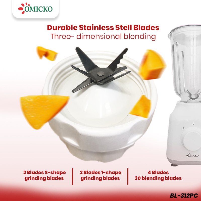 [Star] Omicko Blender pelumat & penghancur es BL-T310PC – 6 stainless steel– 1200ml – 190W