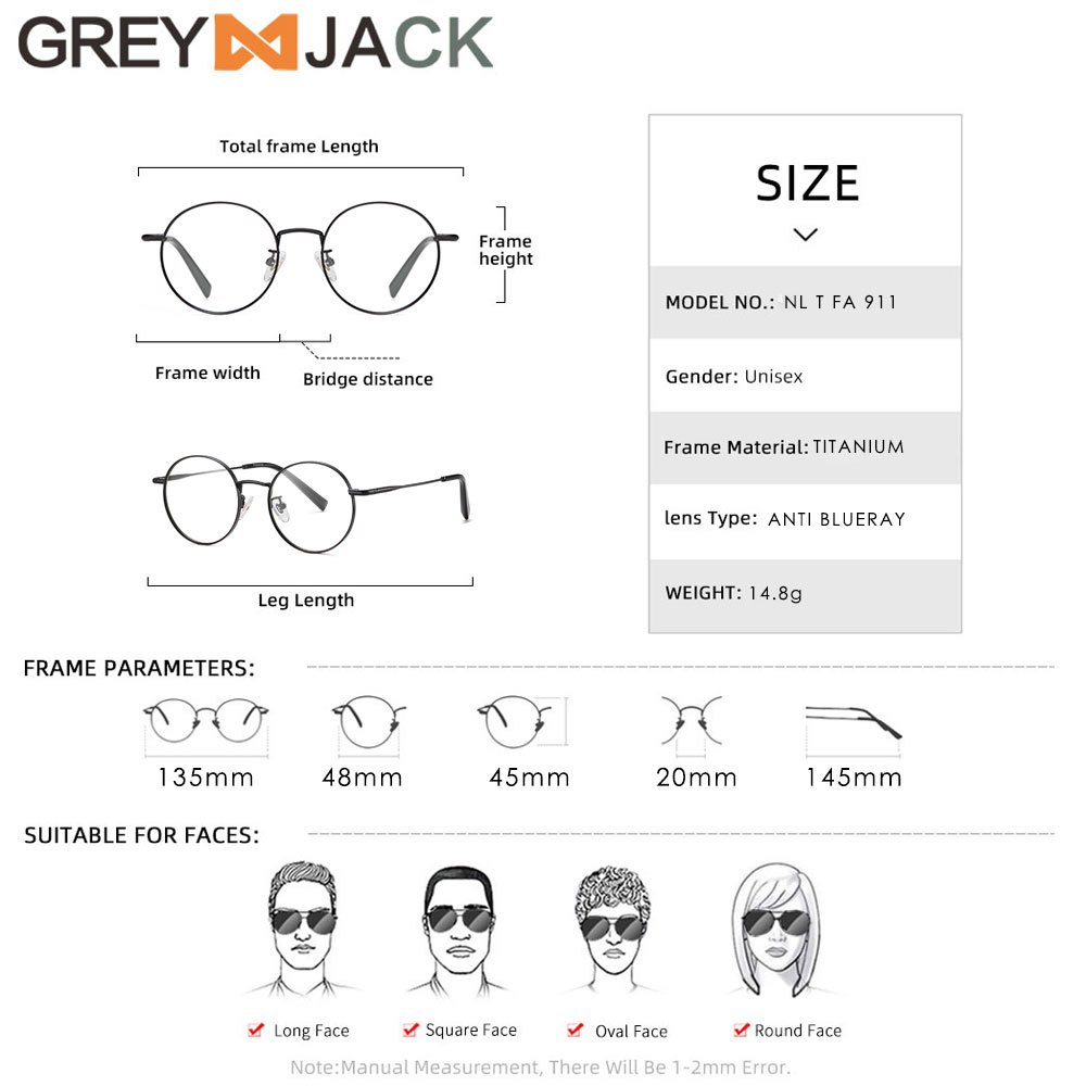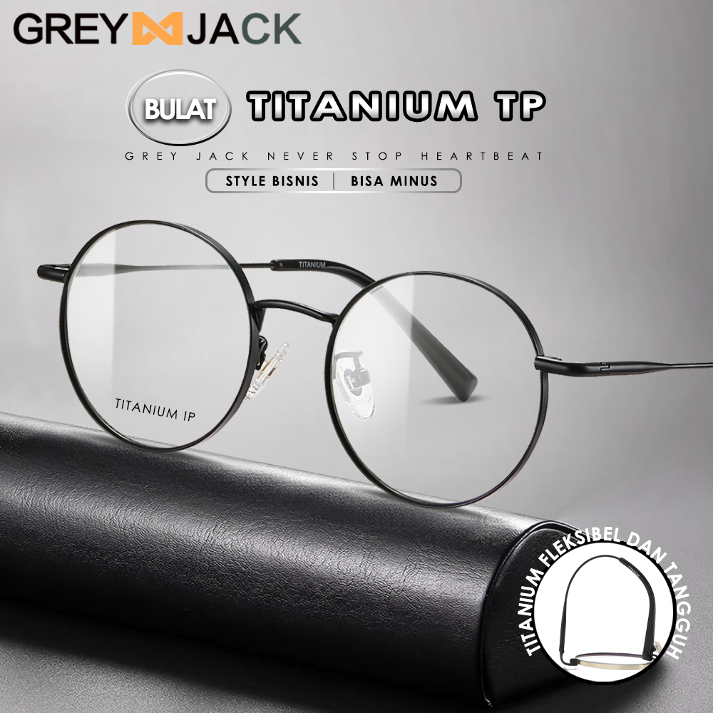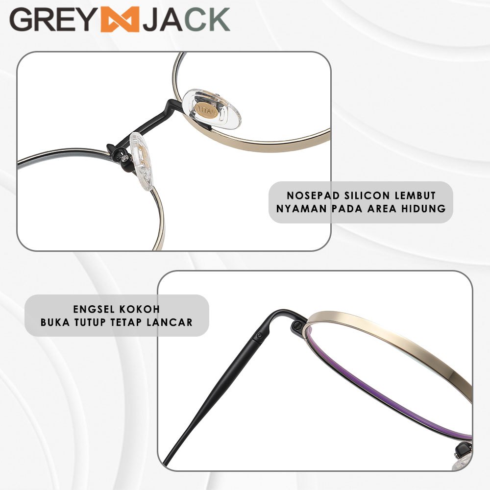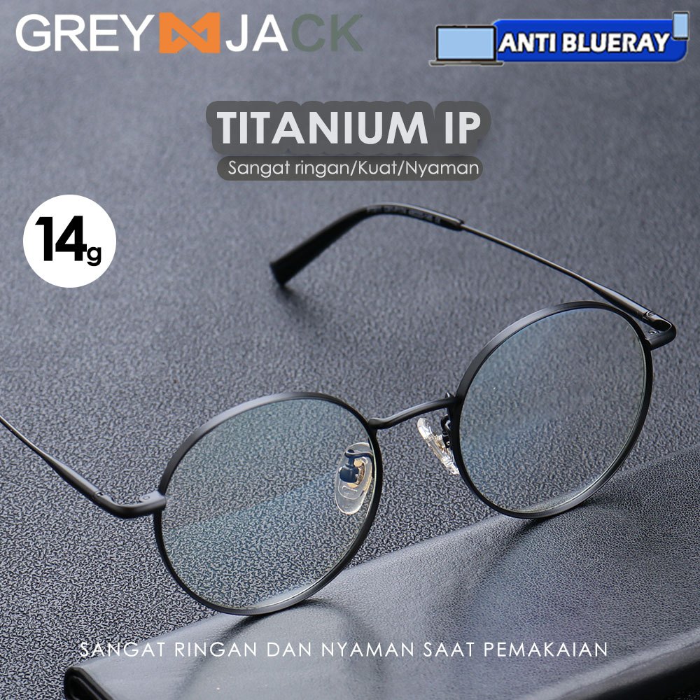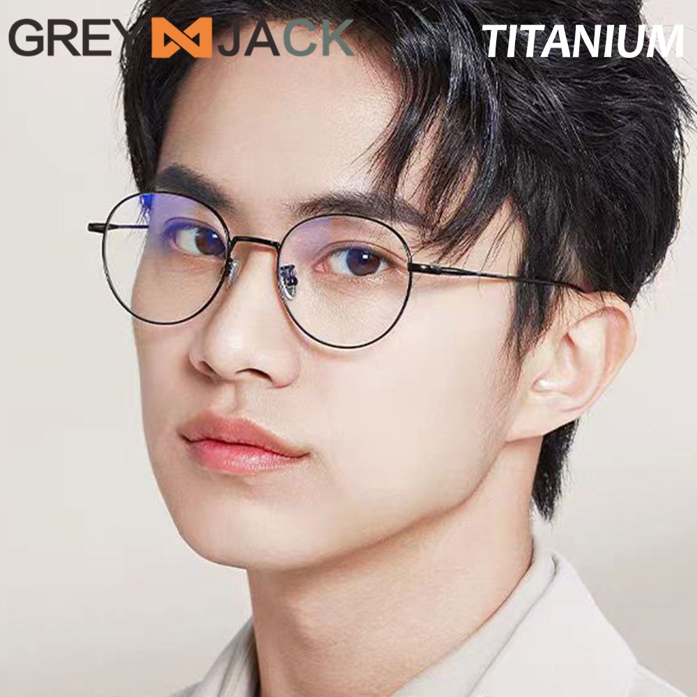 Grey Jack Frame Kacamata Bulat Bahan Titanium Ringan Kokoh Fashion Pria Wanita Bisaa Minus Antiradiasi Blueray Bluecromic 911