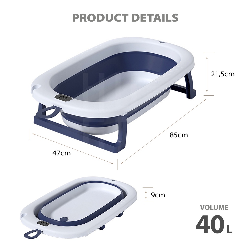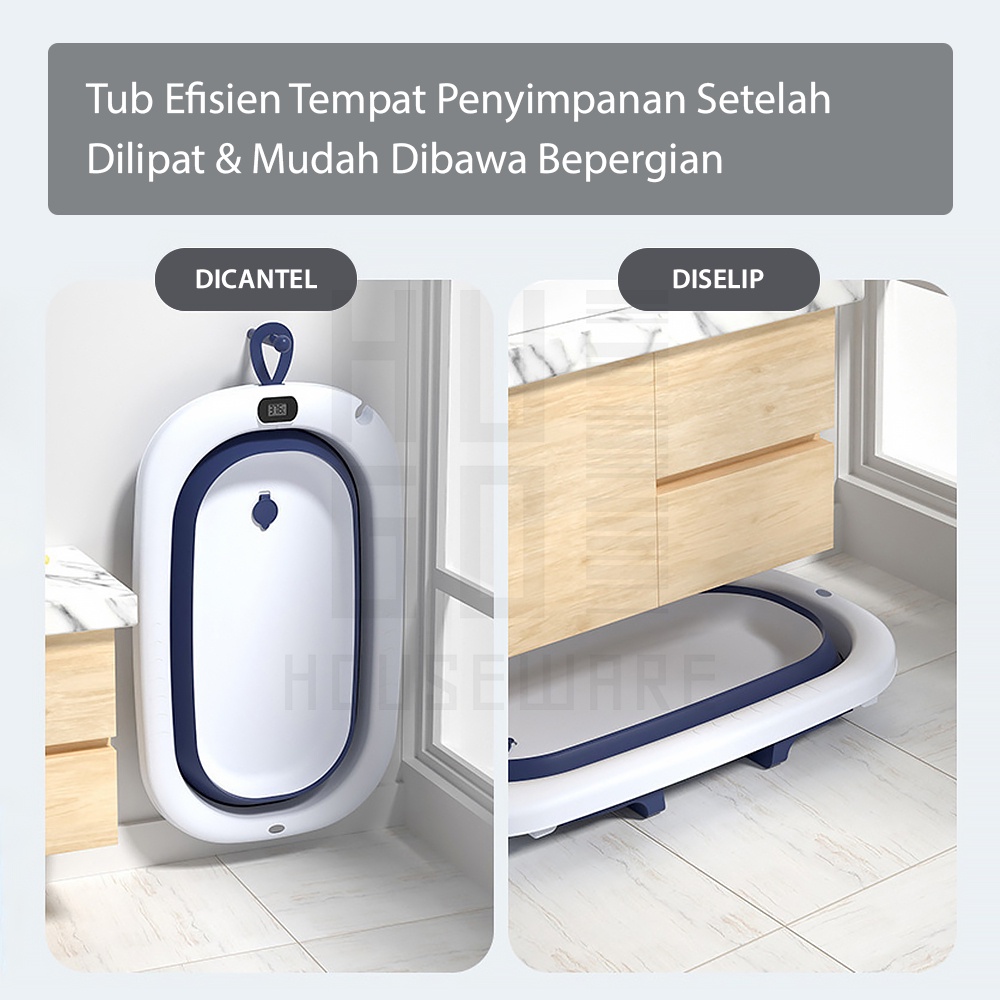 HUGO Bak Mandi Bayi Lipat Portable Baby Bath Tub dengan Pengukur Suhu Perlengkapan Tempat Mandi Bayi