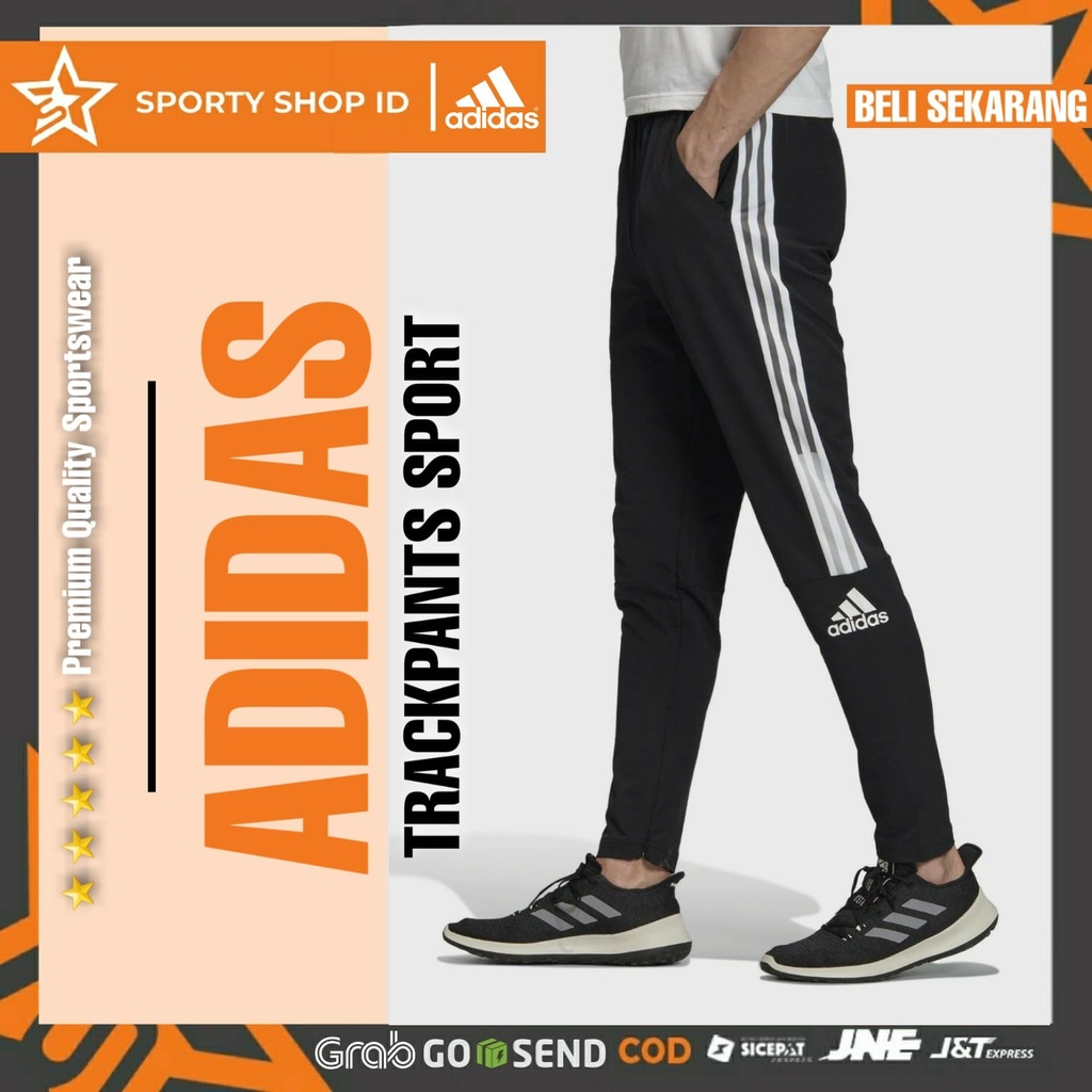 Celana Olahraga Training Traning Branded Track Sport Pants Running Lari Joging Pria Hitam garis putih