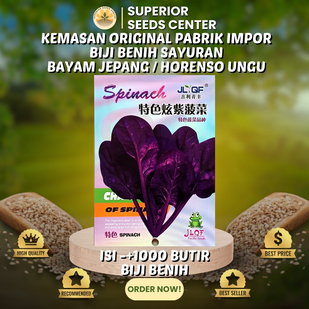 1000 Butir Biji Benih Sayuran Bayam Jepang Ungu | Horenso | Horenzo (Kemasan Original Pabrik Impor)