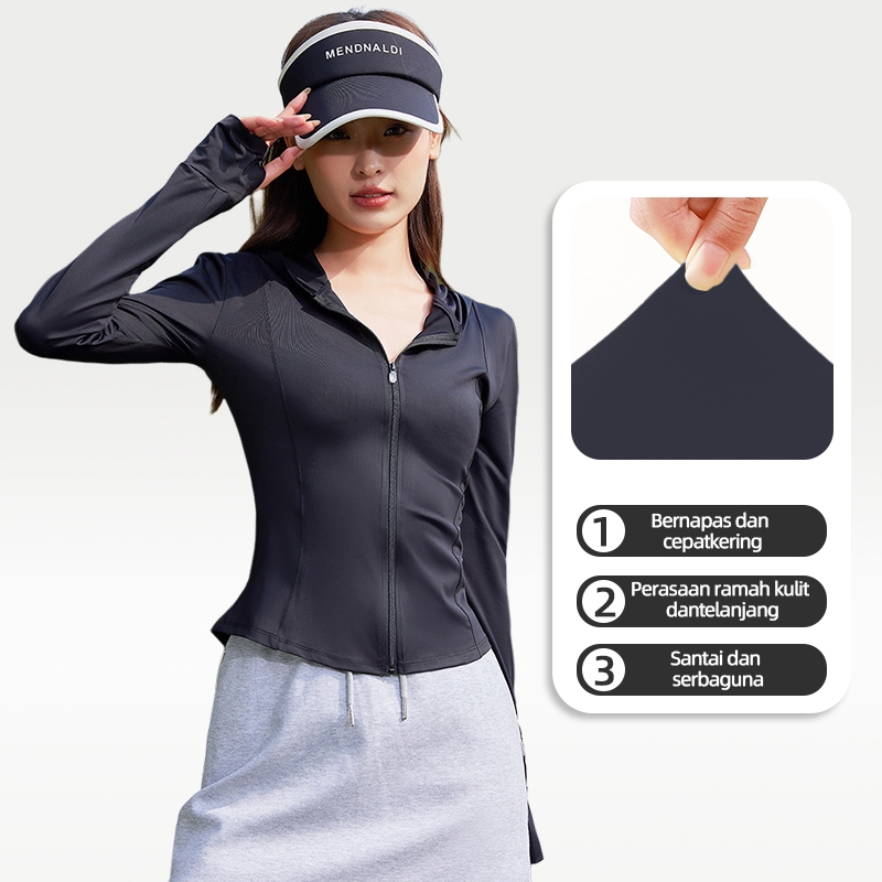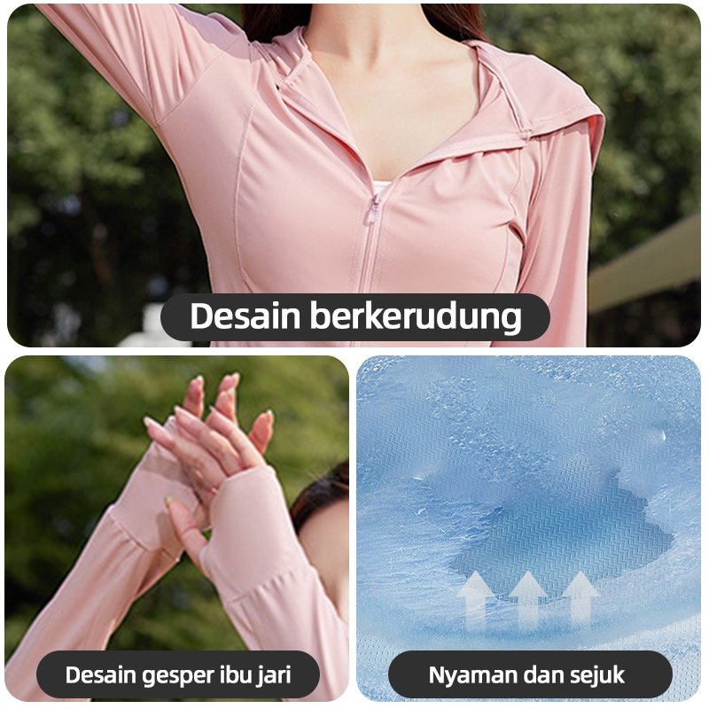 ECOISM Jaket Olahraga Wanita Lengan Panjang Hoodie Sport Anti UV UPF50+ Ice Cool Adem