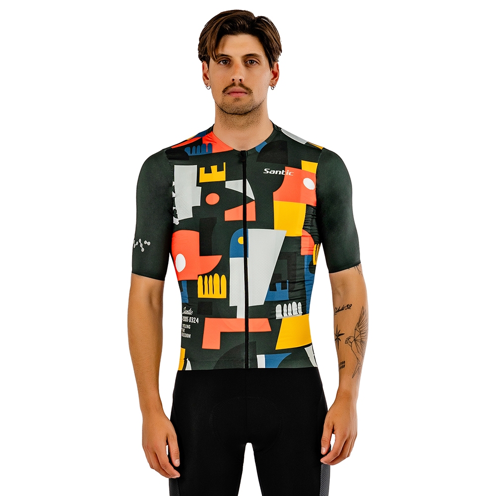 Santic Jersey Bersepeda Pria Lengan Pendek Sepeda Jalan Raya Anti-selip Bernapas Dri-FIT BM24C02236