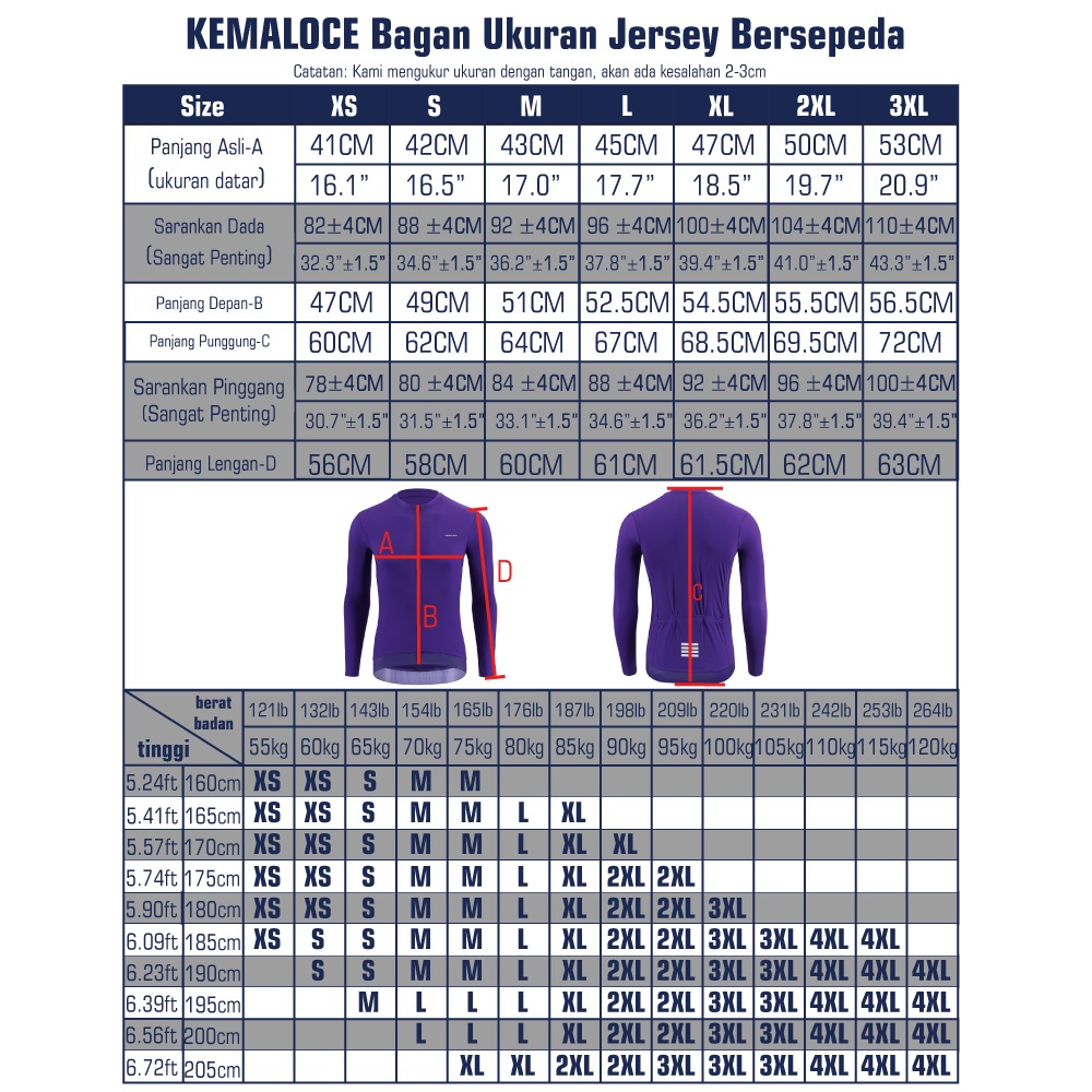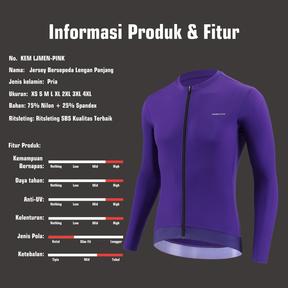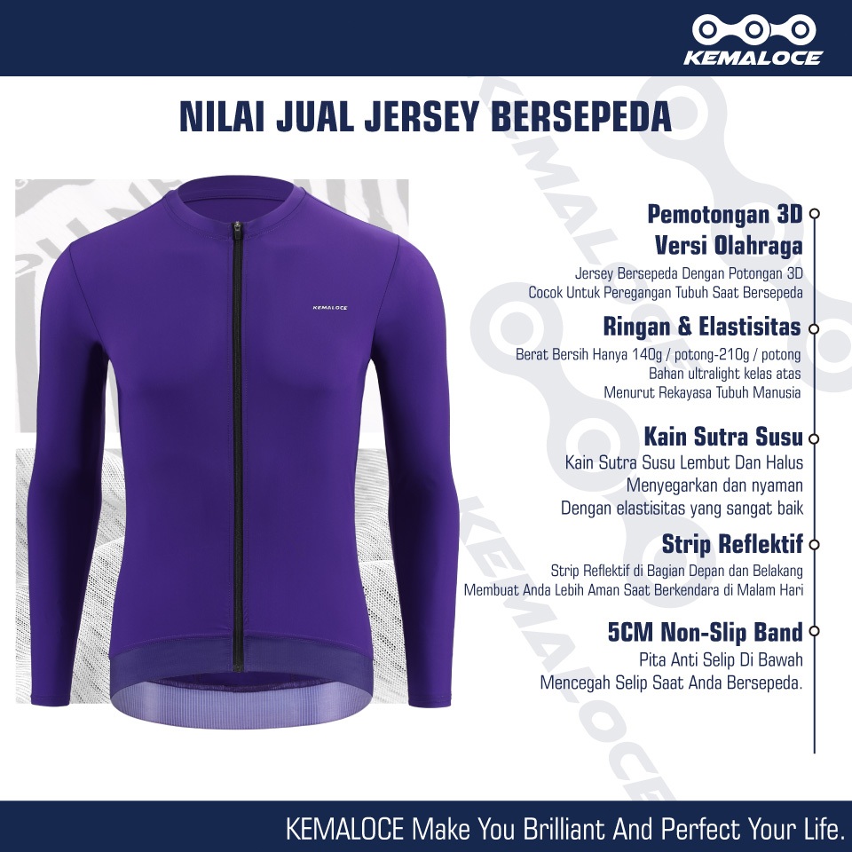KEMALOCE Jersey Sepeda Pria Gowes Roadbike Lengan Panjang Bernapas Jersey Hitam&Biru&Putih&Abu-abu&Ungu Kering Bernapas