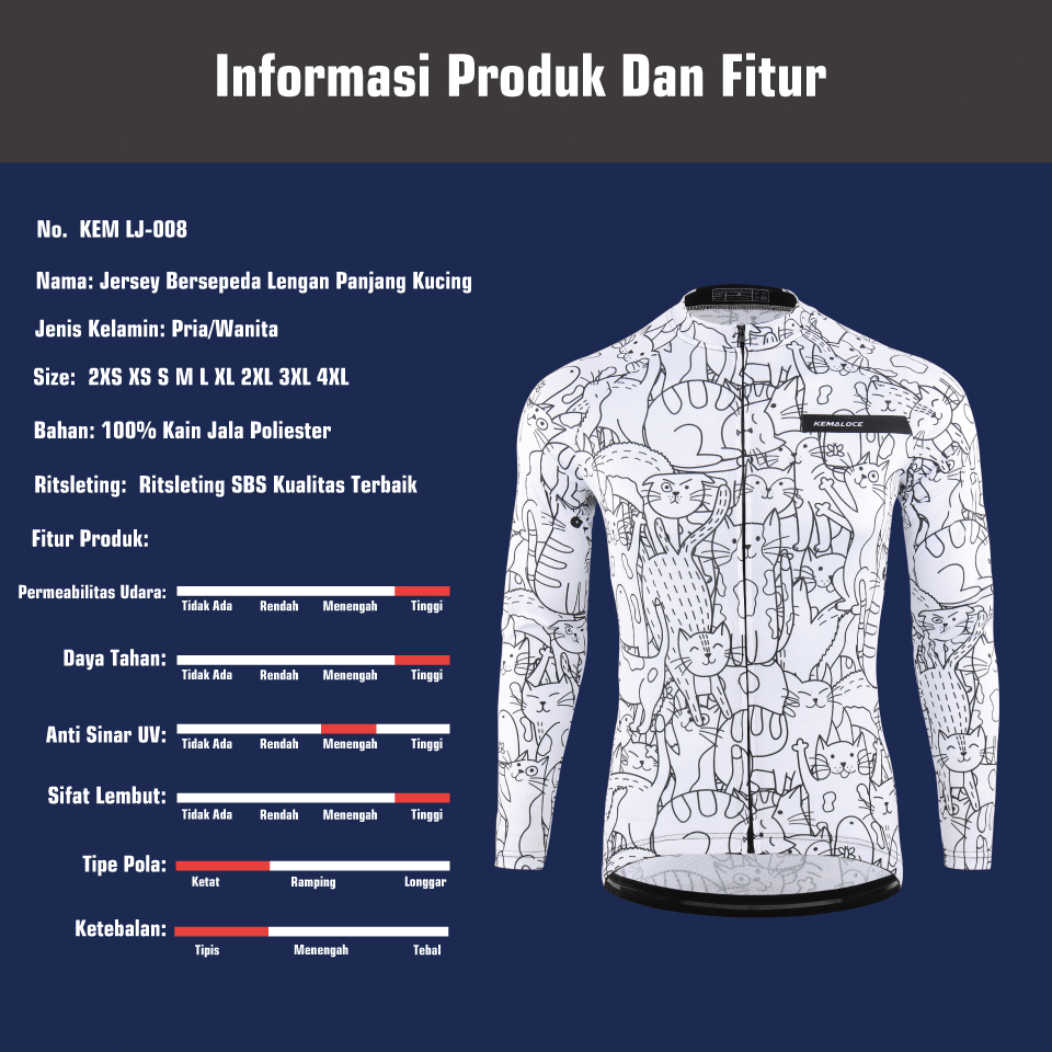 KEMALOCE Jersey Sepeda Roadbike Pria&Wanita Lengan Panjang Cepat Kering Baju Sepeda Panjang Pakaian Berkelakuan 2024 Put
