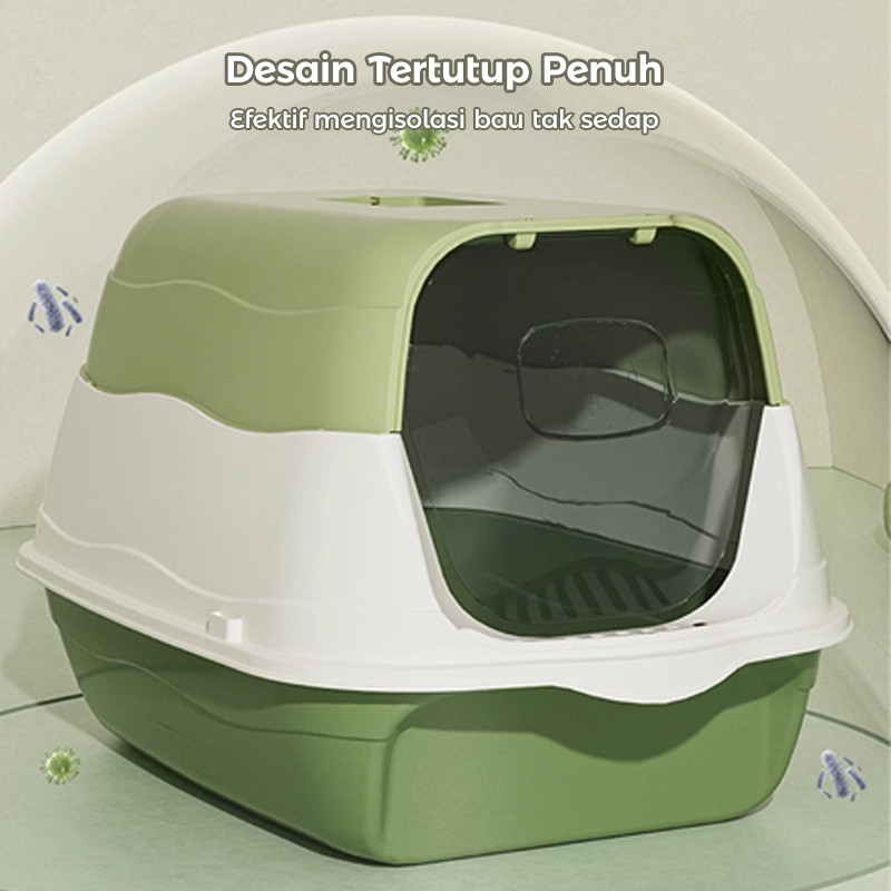 Cat Litter Box Besar 2-in-1Tempat Bak Pasir Kucing Pet Toilet Tertutup Bak pasir Kucing Anti bau Free Sekop