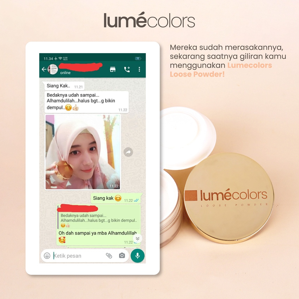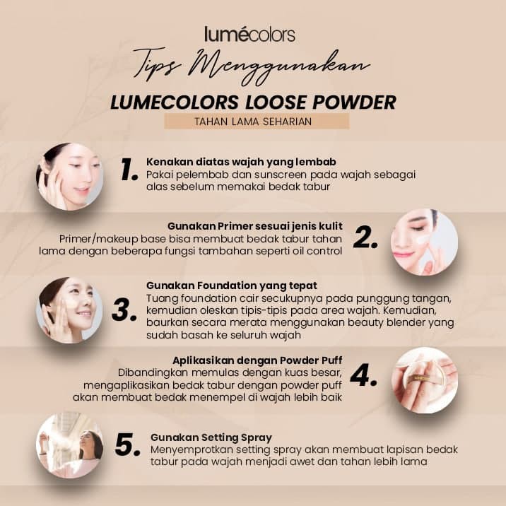 Lumecolors Loose Powder 8gr Bedak Tabur Bertahan Hingga 16 Jam Oil Control Pore Blurring Effect Ringan Lightweight
