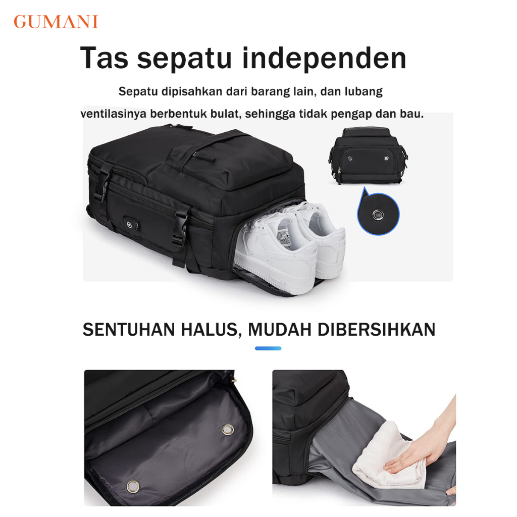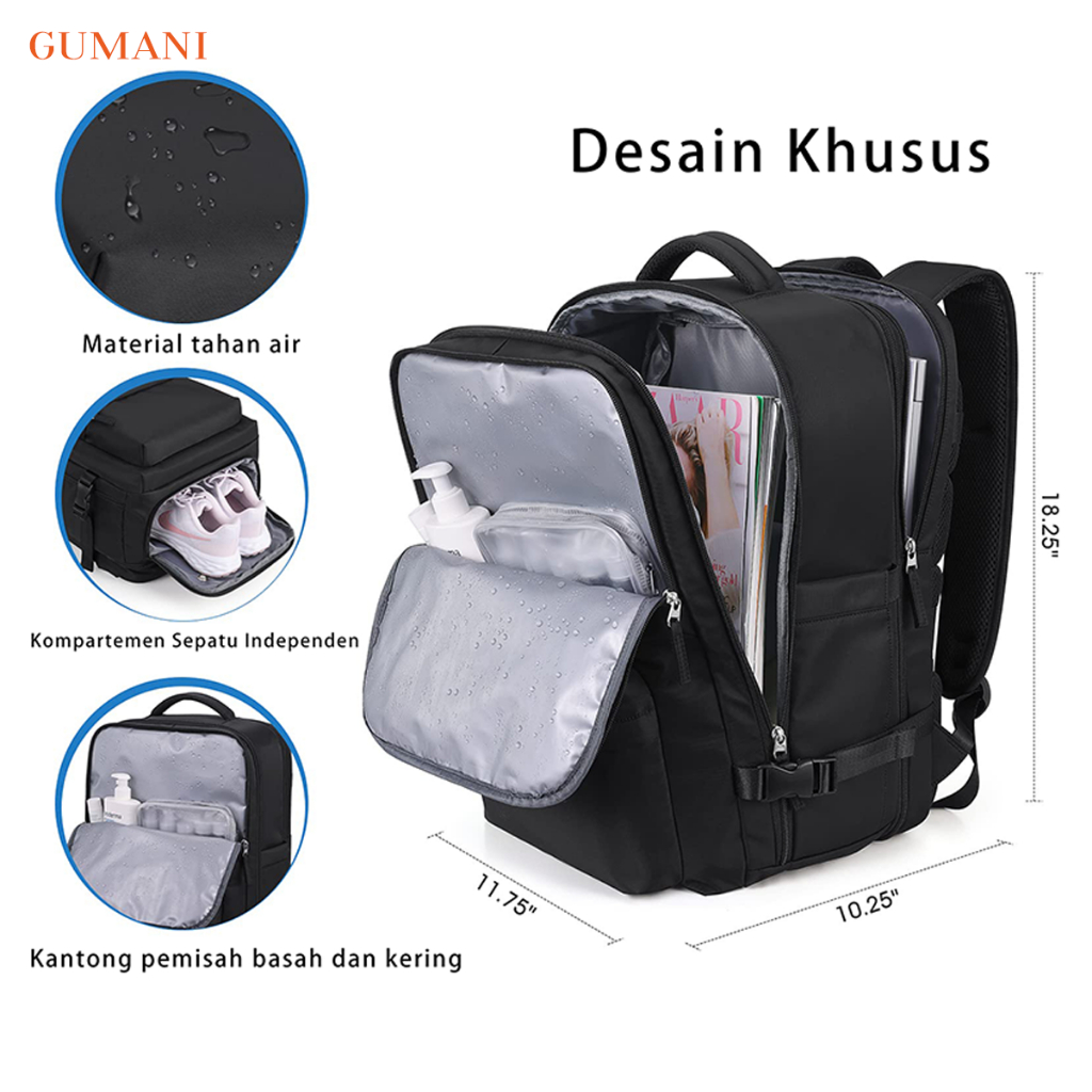 GUMANI Tas Ransel Traveling Wanita/Pria Multifungsi Kapasitas Besar Dengan Ruang Sepatu Terpisah 45L