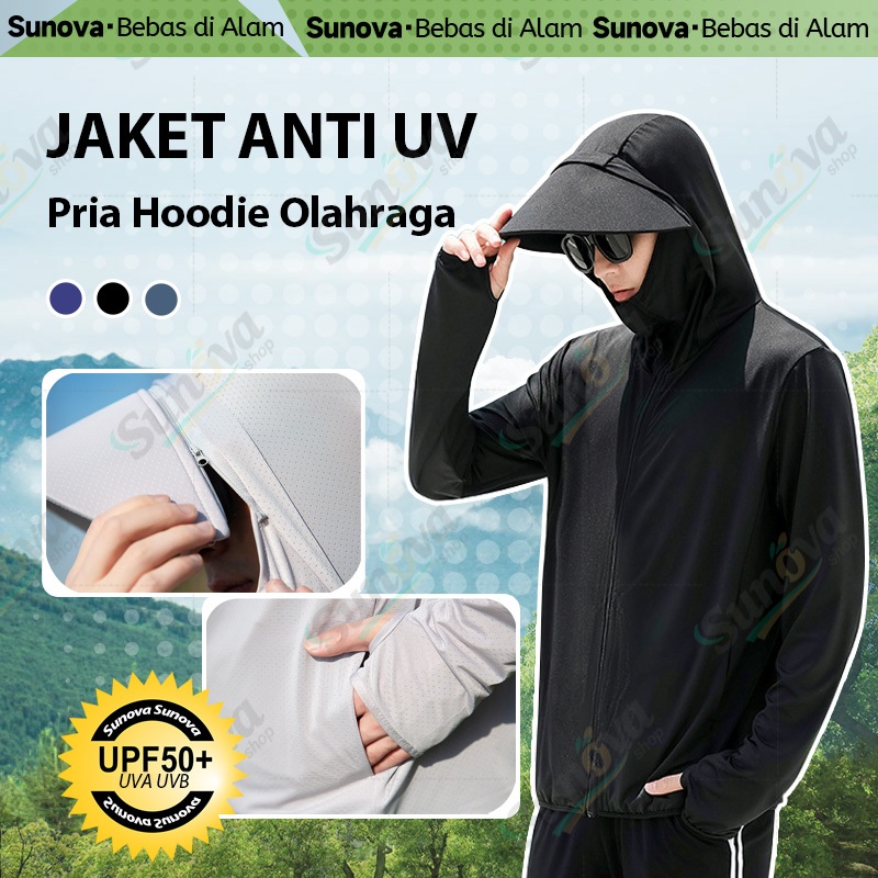 Jaket Anti UV / Pria Hoodie Olahraga Sun Protection / Jaket Perlindungan UV Berkerudung