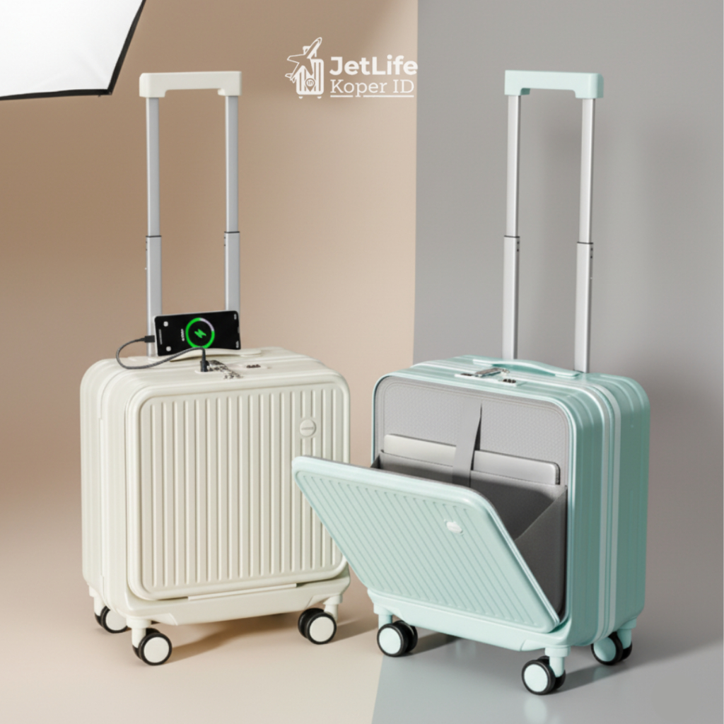 JetLife Koper Kabin Hardcase 18 Inch Slot Laptop Depan Akses Cepat & Port USB Smart Bagasi Pesawat
