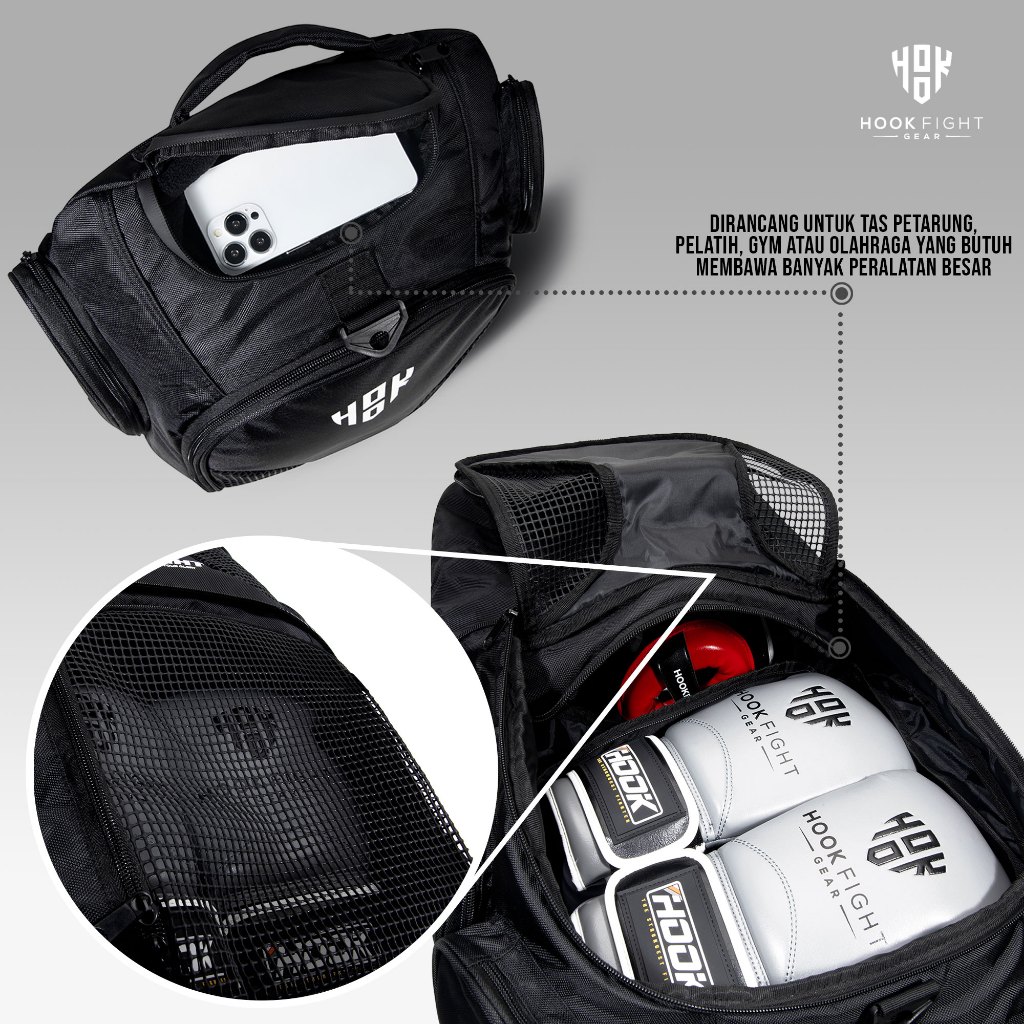 Hook Tas Olahraga Gym Beladiri Boxing Muaythai Taekwondo Karate Silat Fitness TGH-COMBAT-BLACK