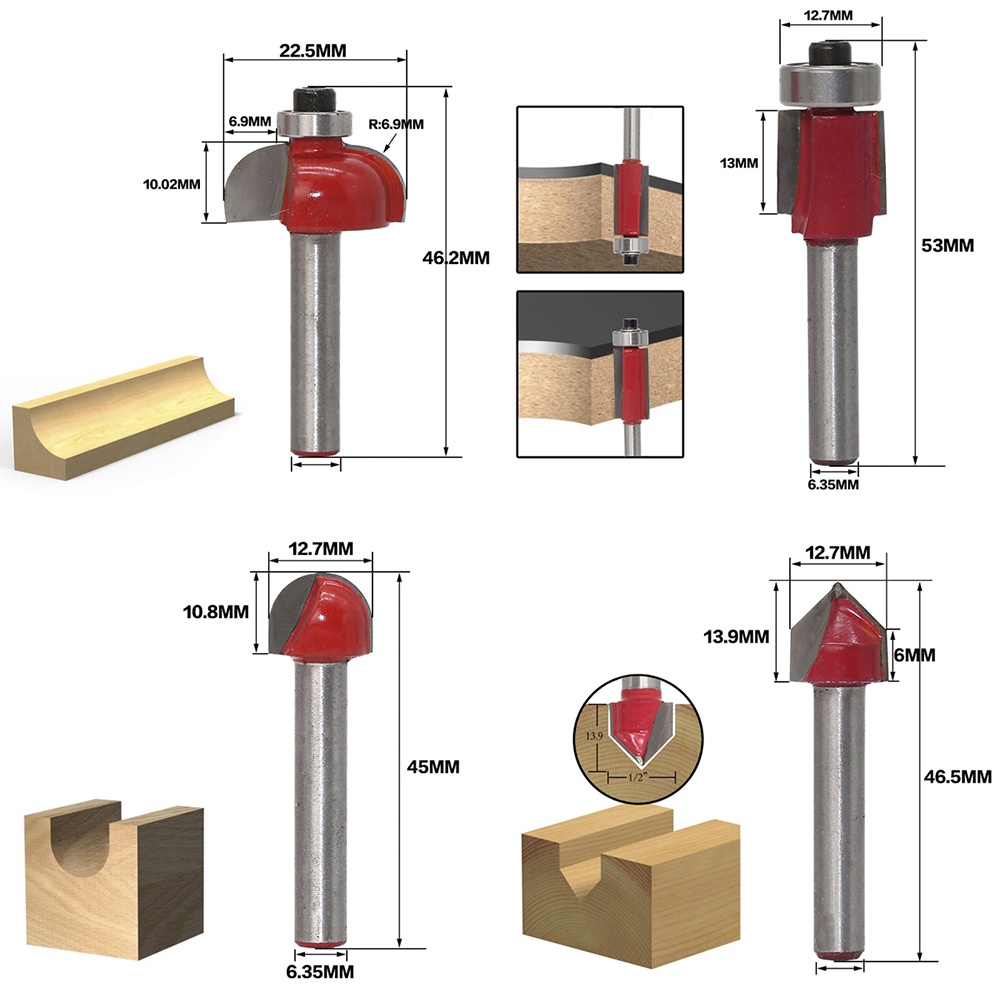 COOFARI Mata Mesin Profil Router Bit Set 15 Pcs 1/4 Inch Untuk Membentuk Kayu Free Box Kayu