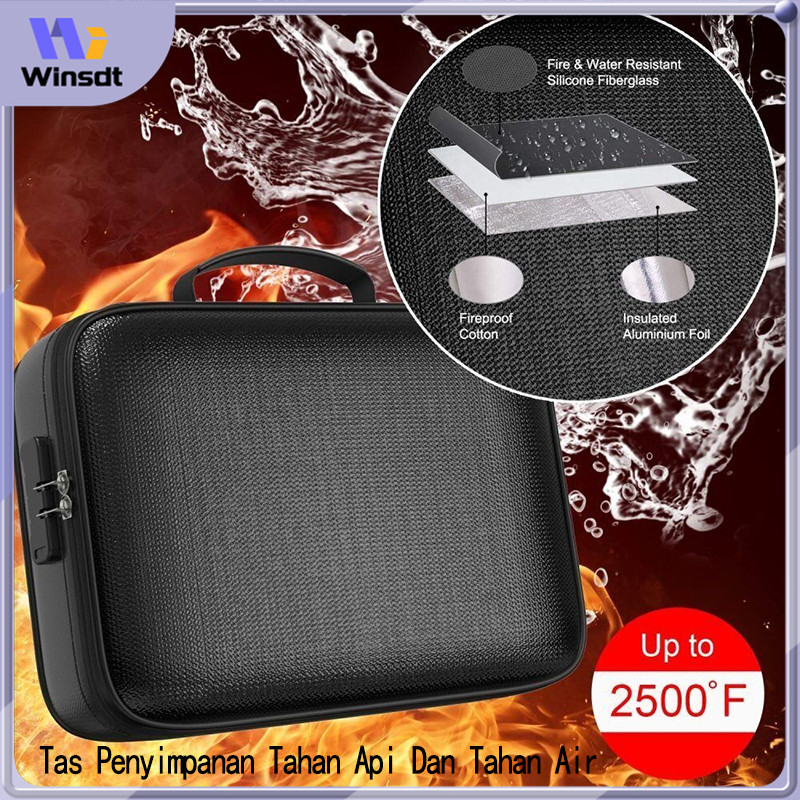 Tas Penyimpan Dokumen Tahan Api dan Air Tempat Berkas Map Kotak Dokumen Ritsleting Tahan Air dengan Kunci Kotak Aman Kan