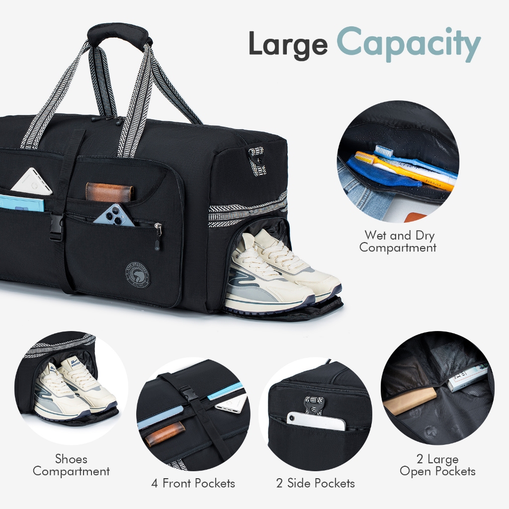 120L/60L Tas Pria Tas Travel Bag Hitam tas travel lipat Tas travel berkapasitas besar pouch travel