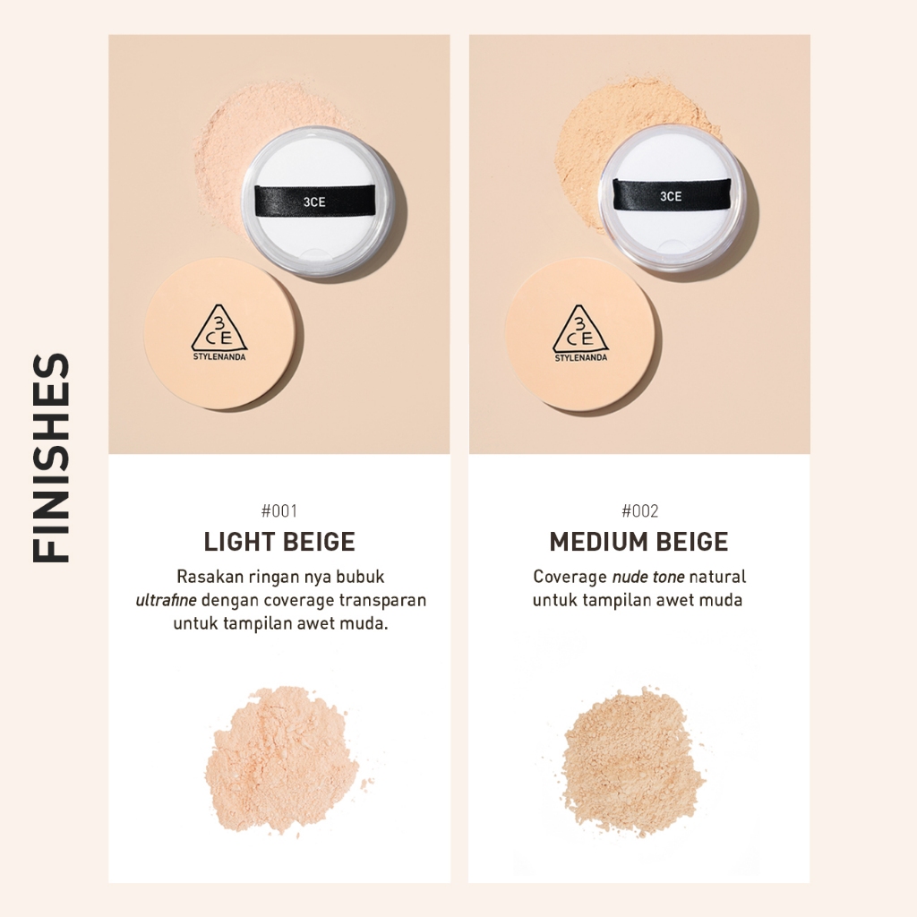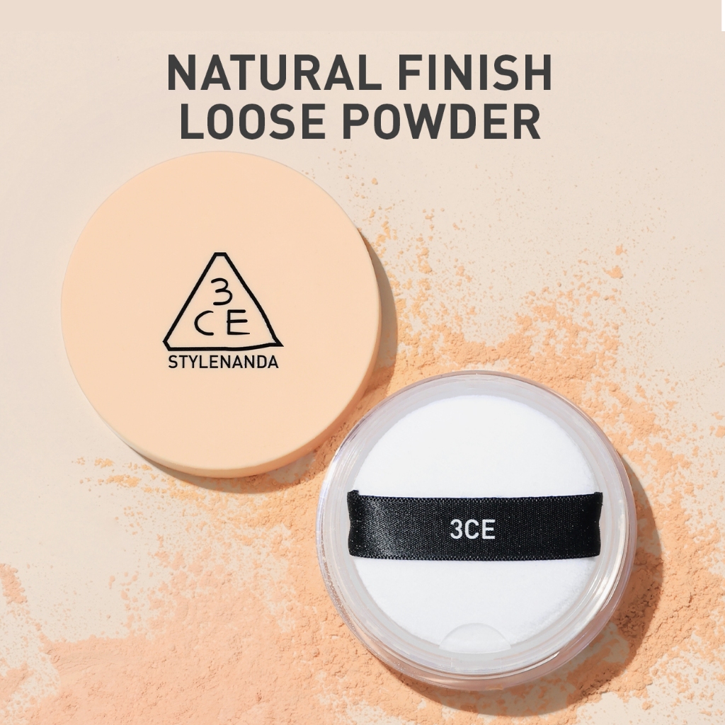 3CE OFFICIAL Natural Finish Loose Powder - Bedak Tabur Tahan Lama Halus Lightweight Lembab Korea