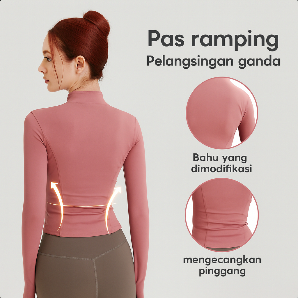 Jaket Olahraga Wanita Lengan Panjang Pakaian Slimfit Body Yoga Untuk Olahraga Gym Fitnes Anti UV