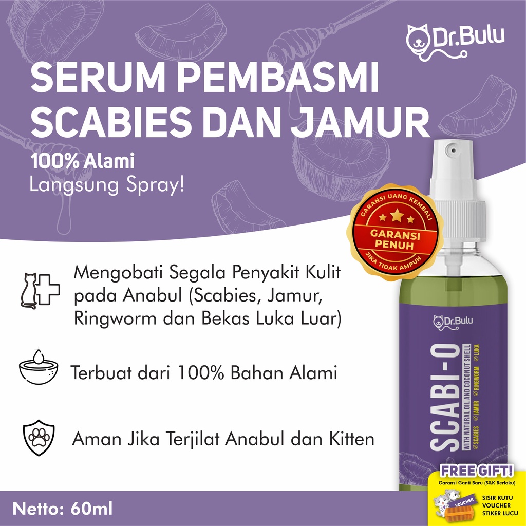 Dr.Bulu - Scabio Serum Antiseptik Alami - Pembasmi Jamur & Scabies Kucing, Pengering Luka Kucing