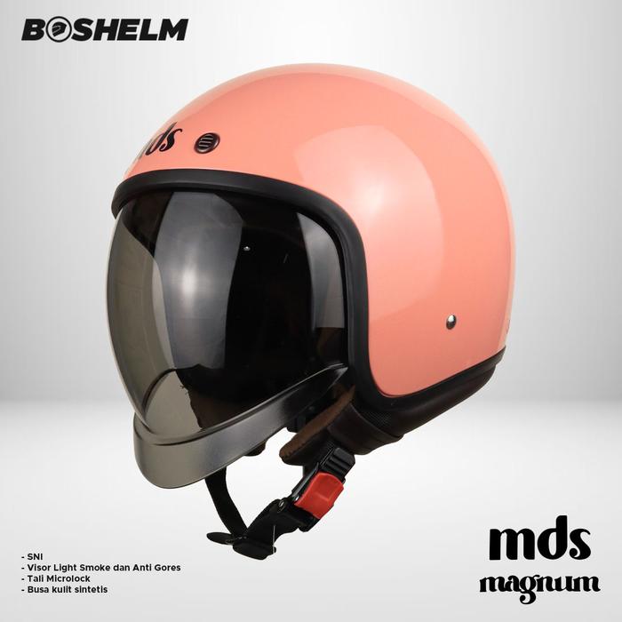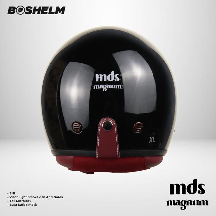 Helm Retro MDS MAGNUM SOLID Helm Half Face SNI - CREAM GLOSSY, M