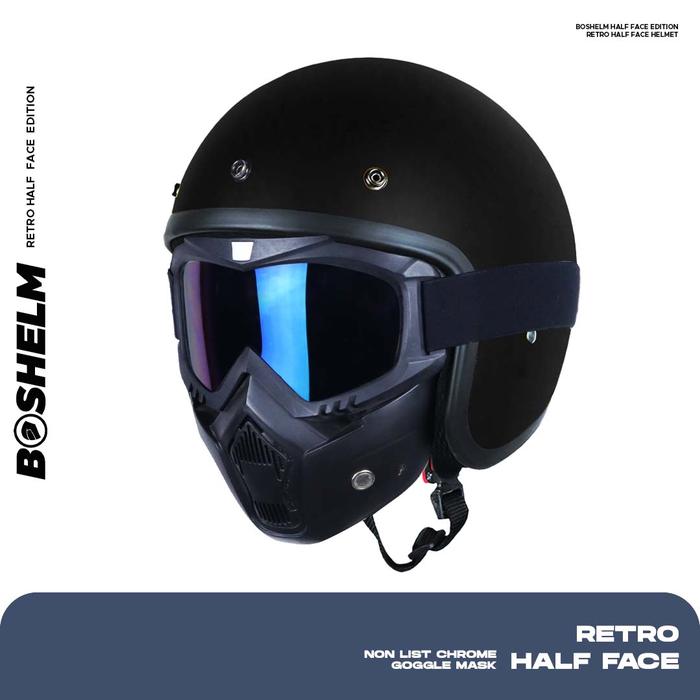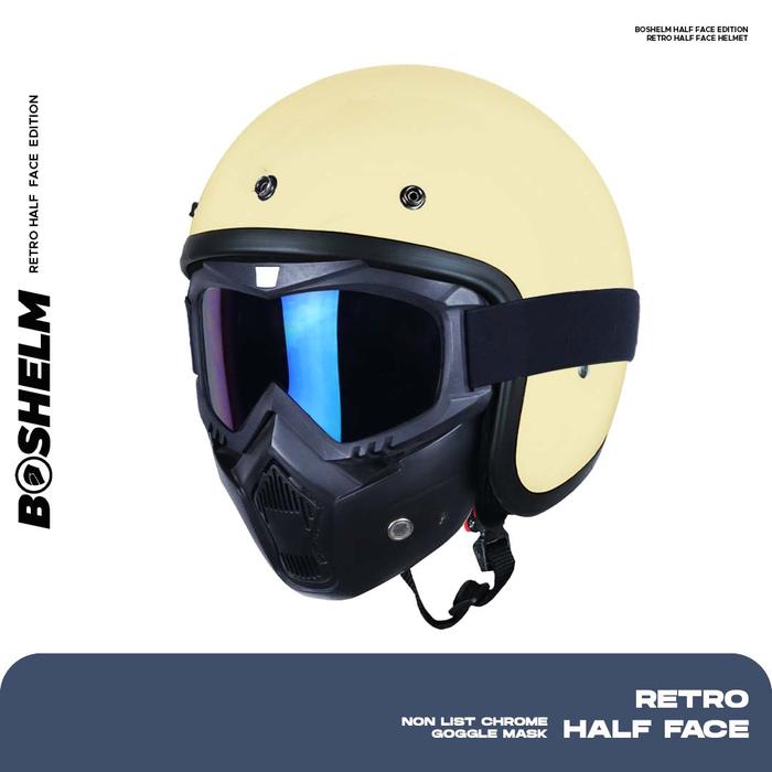 Helm Retro Goggle Mask Helm Half Face SNI - CREAM GLOSSY, CLEAR