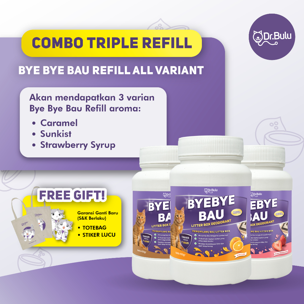 Dr.Bulu - Combo Triple Refill Penghilang Bau - Penghilang Bau Litter Box Kucing & Anjing Odor Remover