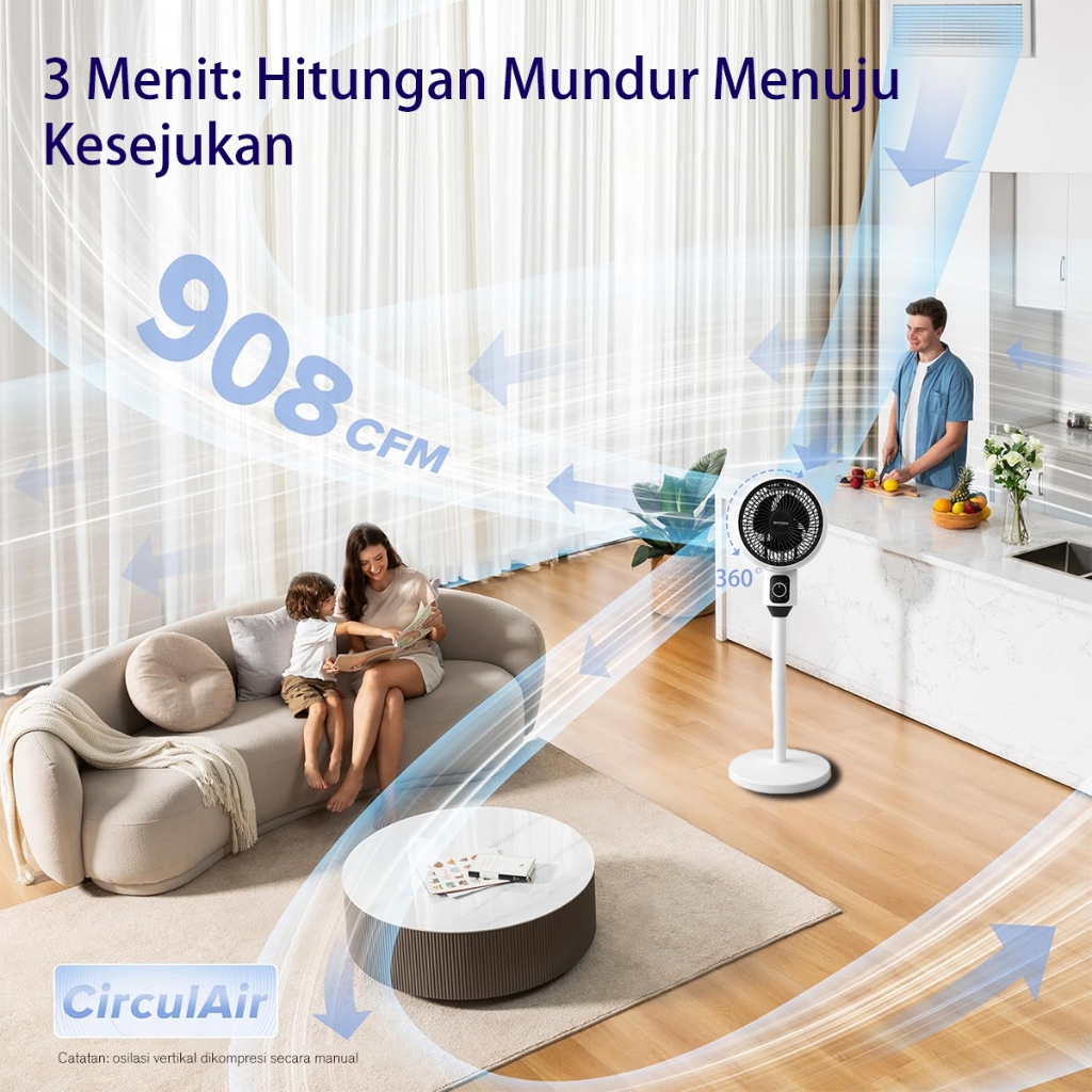 Kipas Angin Berdiri Rotation Fan Minimalis Stand Fan 180 Derajat 9 Inch Jangkauan Jauh Stand Fan Low Noise