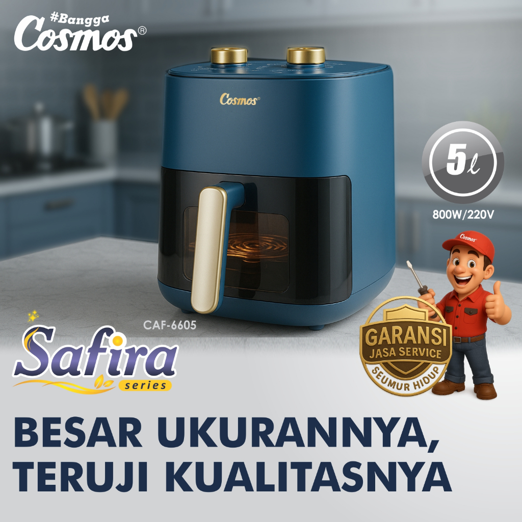 Cosmos CAF-6605 Air Fryer 5 Ltr Safira series, HRAF04 hitam , HRAF04 pink , HRAF04 hijau , HRAF04 Putih