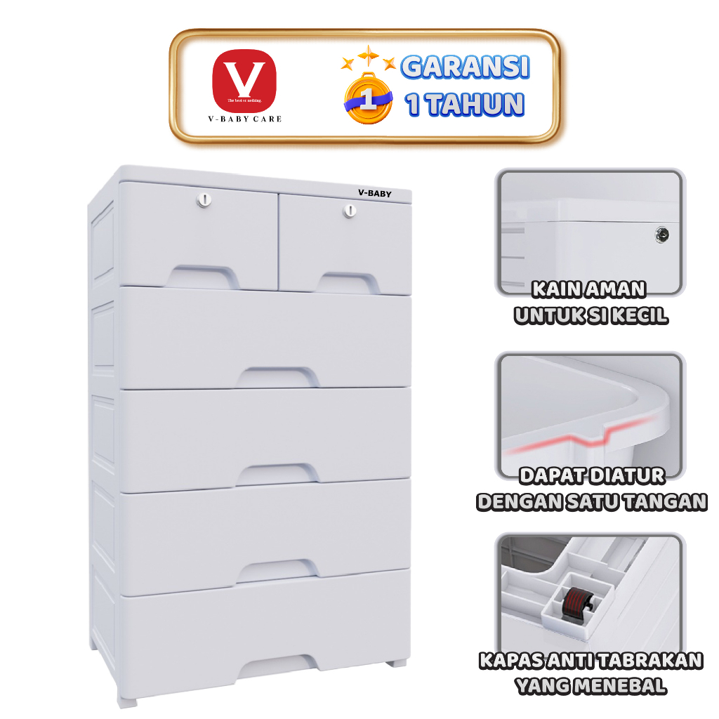 V-BABYCARE Lemari Pakaian/Lemari plastik Cabinet Ukuran Jumbo 5 Tingkat Termurah Dengan/VBABY-T1
