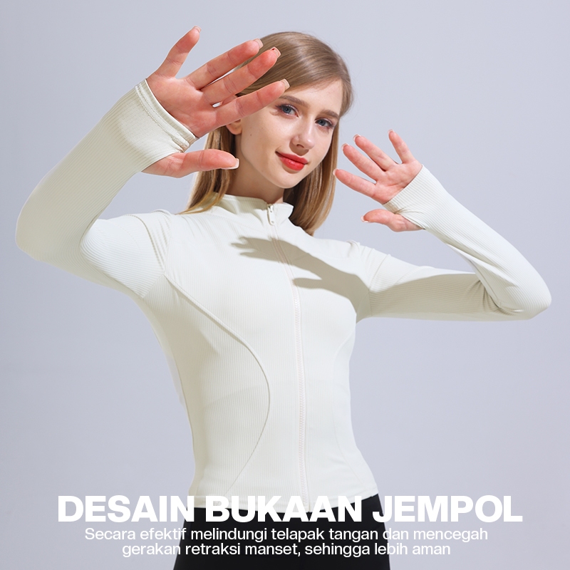 RAGA Jacket Olahraga Wanita Baju Anti UV Pakaian Lengan Panjang Jaket Olahraga Bergaris Baru