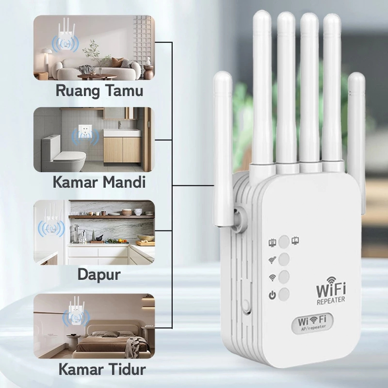 1200Mbps dual-band 5G, penguat sinyal WiFi penguat router, repeater, plug and play, 4 antena eksternal, sinyal penetrasi dinding kuat dan stabil